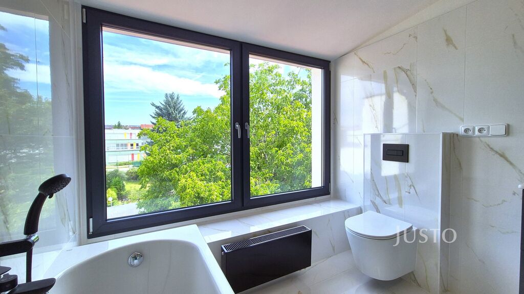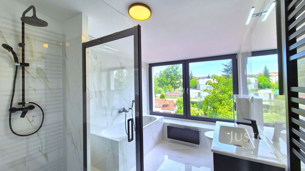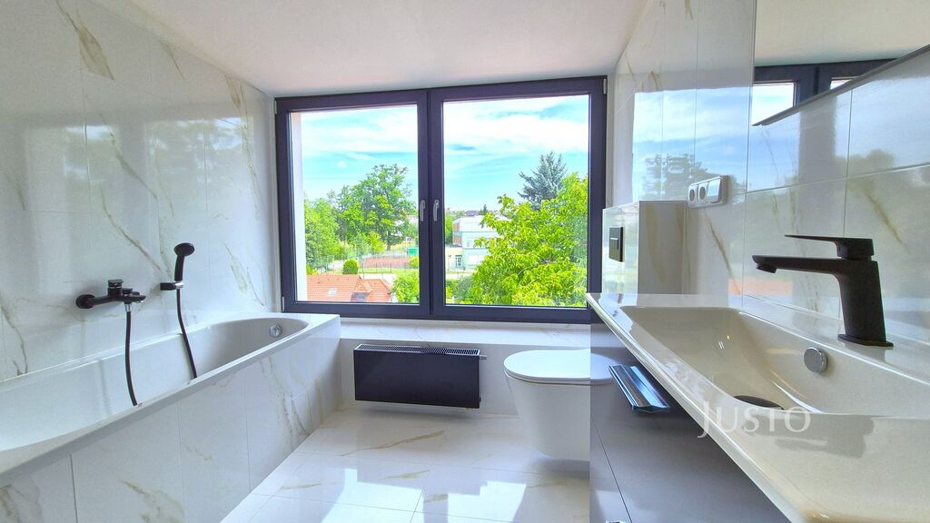 Stylová koupelna s moderním vybavením pak podtrhuje celkový komfort, který byt nabízí.