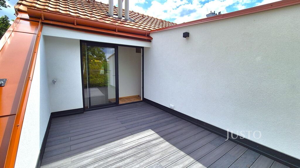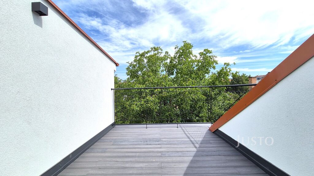 Byt o užitné ploše 67,3 m² a dispozici 2+kk se šatnou nabízí dostatek prostoru i pro náročnější zájemce. K dispozici je také terasa o výměře 10,9 m², orientovaná do zahrad – ideální pro relaxaci, posezení nebo letní večeře.