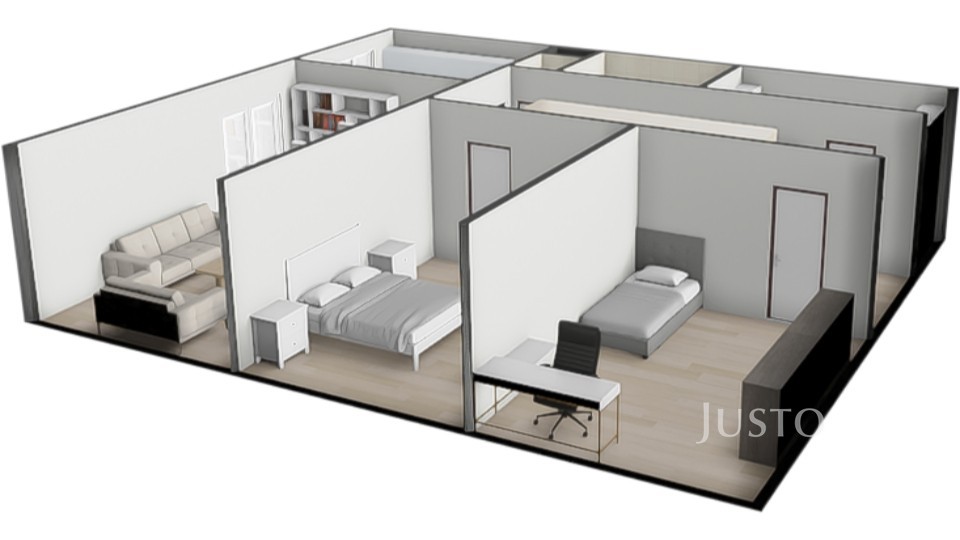 - v srdci bytu je opravdu prostorná hala, která může sloužit jako další úložný prostor, může být částečně využita jako herna pro děti atp.