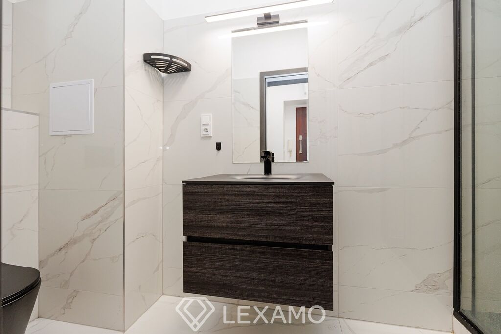Jednotka je ve velmi krásném stavu, neboť v nedávné době proběhla rekonstrukcí. Součástí vybavení je kuchyňská linka se všemi vestavěnými spotřebiči a koupelnové skříňky.