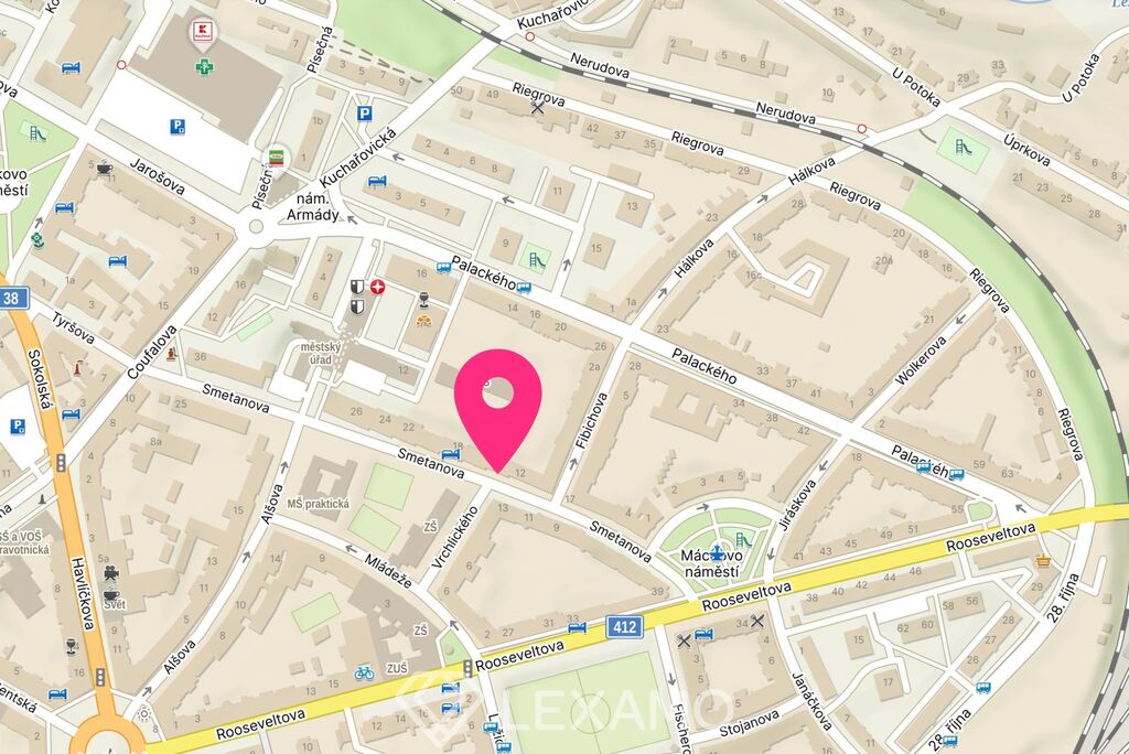 Nachází se v 1. patře, tedy ve druhém nadzemním podlaží revitalizovaného cihlového domu na ulici Smetanova, v lokalitě s veškerou občanskou vybaveností v docházkové vzdálenosti.