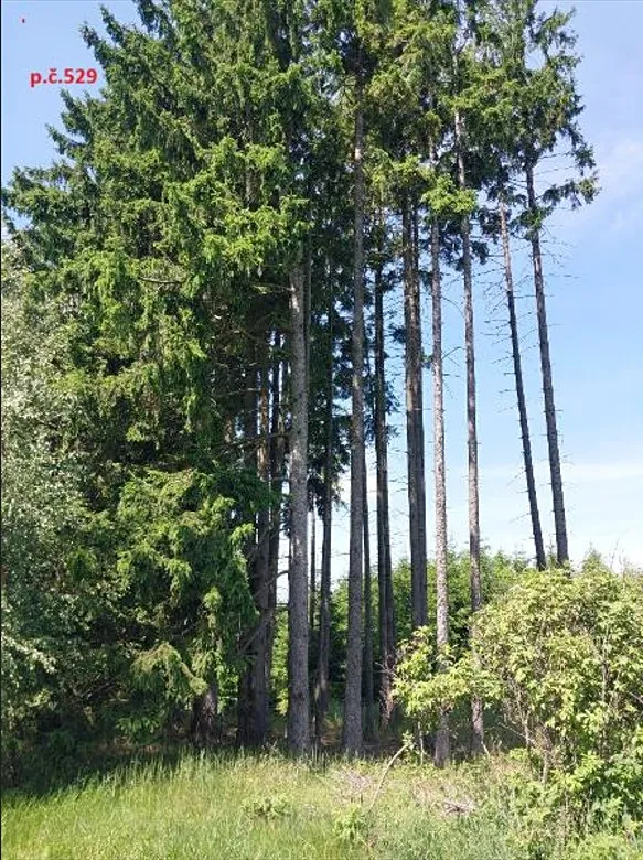 Na části pozemku se nachází 99-letý smrkový porost.