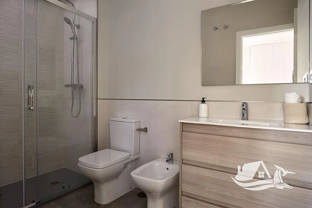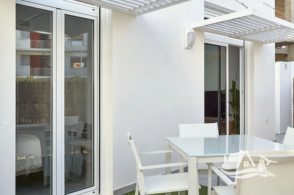 Tento prostorný byt o dispozici 4+kk s celkovou plochou 110 m² nabízí svěží, vzdušný interiér s vysokými stropy a přímým vstupem na slunnou terasu o velikosti 19 m². Je ideální pro rodiny, páry i každého, kdo touží po klidném přímořském domově nebo chytré investici v rychle se rozvíjející části Andalusie.