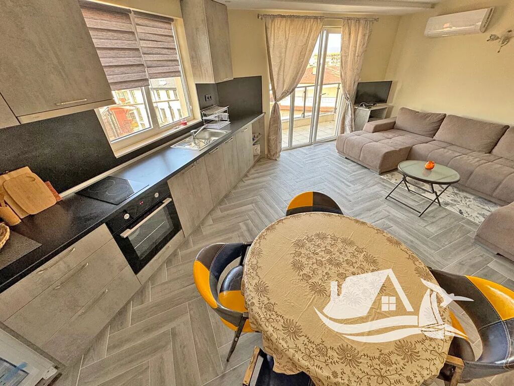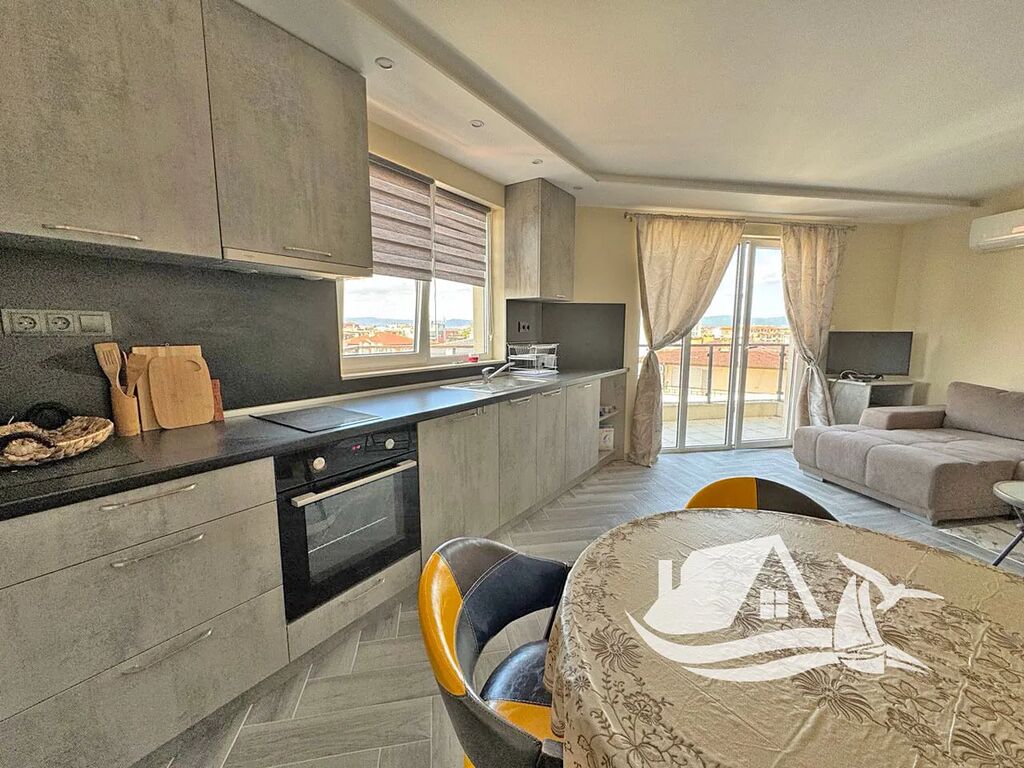 Byt se nachází v 5. patře krásného komplexu Omega Resort a nabízí prostorný obývací pokoj s kuchyňskou částí, ložnici, koupelnu a velkou terasu s uklidňujícím výhledem na moře. Prodává se kompletně vybavený, připravený k okamžitému užívání – stačí otevřít dveře a nadechnout se mořského vzduchu.