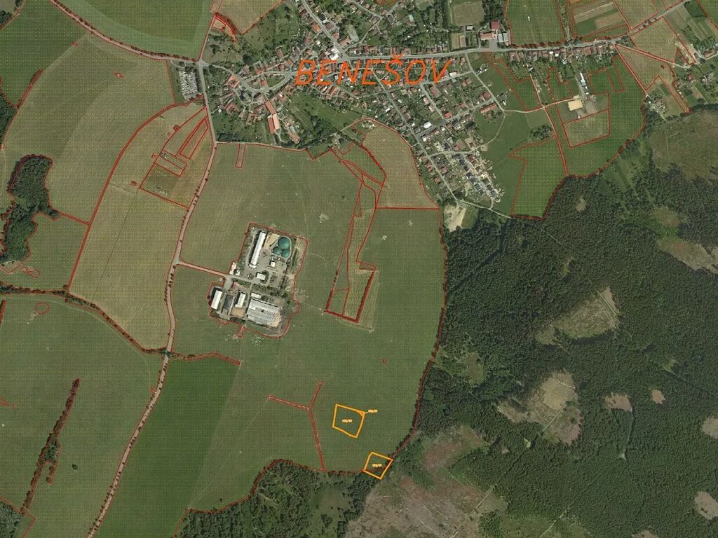 Předmětem dražby jsou pozemky o celkové výměře 9 944 m2 nedaleko obce Benešov v
