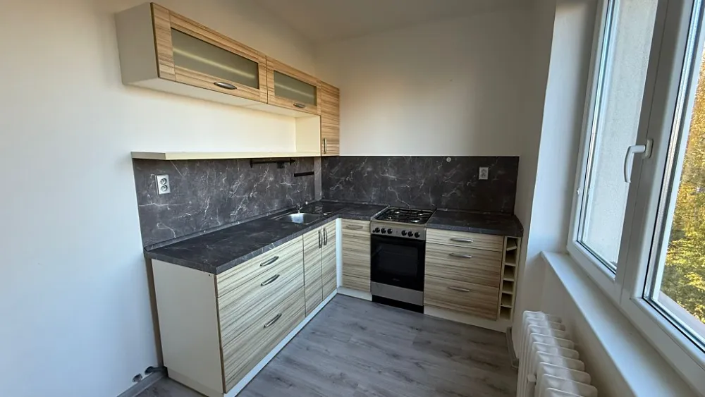 Byt prošel kompletní rekonstrukcí. Okna jsou orientována na dvě protilehlé strany. Samostatné WC a koupelna se sprchovým koutem. Z obývacího pokoje je francouzské okno a výhled do zeleně. Klidná lokalita. K bytu náleží sklepní kóje.