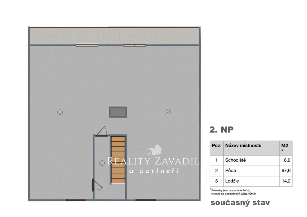 V podkroví je aktuálně otevřený prostor, který lze přizpůsobit vašim potřebám – je zde možnost vybudování tří až čtyř pokojů a koupelny s WC (viz vizualizace ve fotografiích inzerátu).