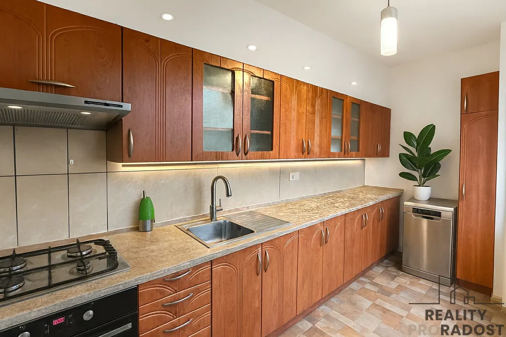 Byt je světlý, útulný a po rekonstrukci, která zahrnovala nová plastová okna, elektroinstalaci, rozvody vody a odpadu, nové omítky, plovoucí podlahy.