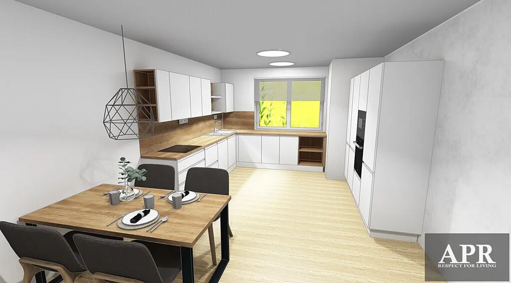 Co je v bytě k dispozici? na míru vyrobená kuchyňská linka včetně vestavěných spotřebičů, kompletně vybavená koupelna se sprchovým koutem úsporné podlahové elektrické vytápění rohože šetrné k životnímu prostředí.