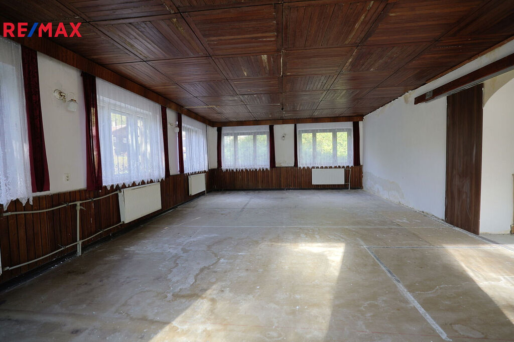 Objekt je vhodný ke kompletní rekonstrukci. Dispozice v obou podlažích je patrná z přiloženého půdorysu. V suterénu se nachází 7 pokojů s vlastními sociálními zařízeními + další místnosti s možností dalšího využití. V horní části se nacházela restaurace s velkou kuchyní a dvěma sály. Tyto prostory je možno využít různými způsoby dle potřeb a záměru budoucího vlastníka.