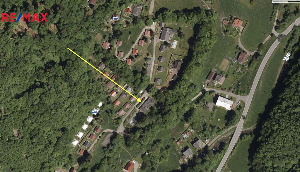 Před budovou je prostorná terasa po celé délce, od asfaltové příjezdové cesty je oddělená živým plotem. Příjezdová komunikace je zatížena věcným břemenem chůze a jízdy ve prospěch prodávaného objektu. Ten je bez jakéhokoliv omezení vlastnického práva.