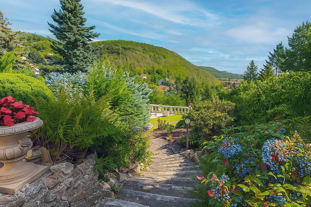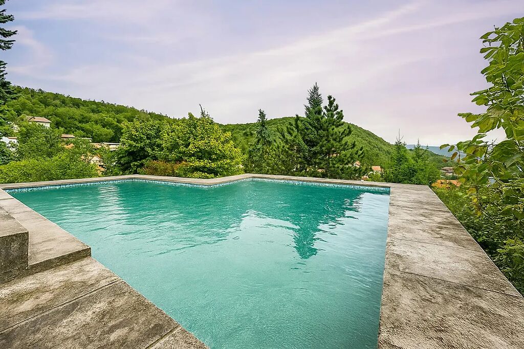 Dominantou domu je rozsáhlá zahrada s venkovním bazénem a slunnou terasou, která poskytuje naprosté soukromí a prostor pro relaxaci i rodinné aktivity.