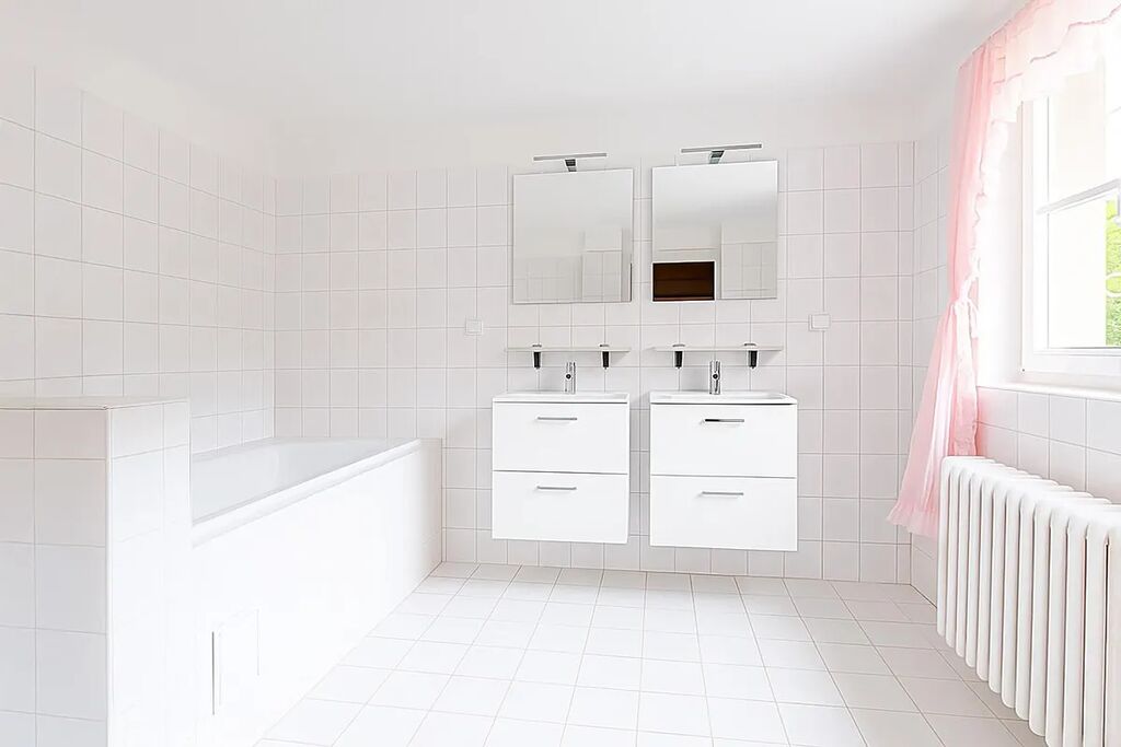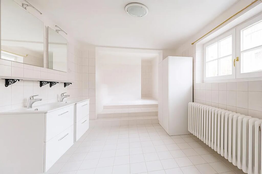 2 velké koupelny s vanou, WC, bidetem, dvojumyvadlem a pračkou + 2 WC zvlášť,