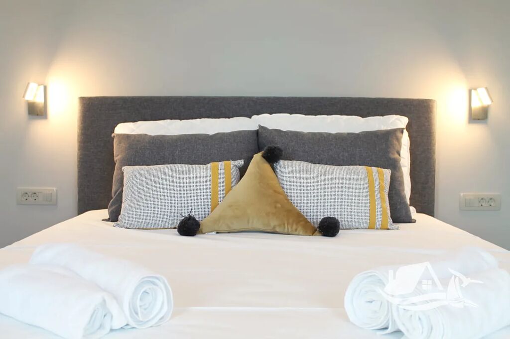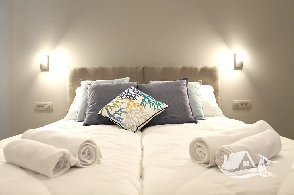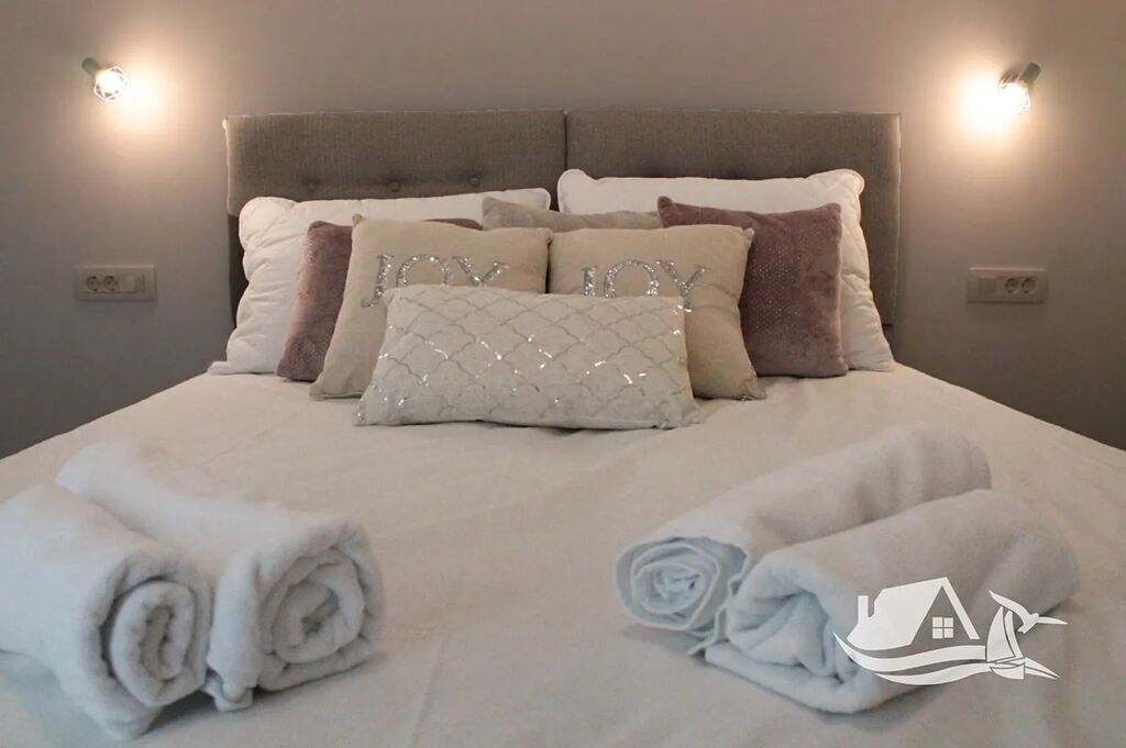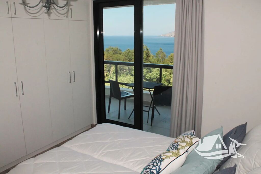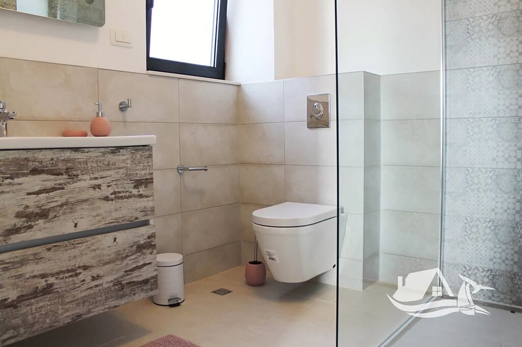 V přízemí a prvním patře se rozkládá hlavní mezonetový byt o ploše 212 m². Vstupní úroveň zahrnuje prostorný obývací pokoj propojený s jídelnou a kuchyní, toaletu pro hosty a přímý vstup na terasu s bazénem o velikosti cca 30 m². Sluneční terasa kolem bazénu nabízí ideální prostor pro odpočinek s výhledem na moře a okolní ostrovy. V horním patře tohoto bytu se nacházejí tři prostorné ložnice, každá s vlastní koupelnou, a balkon o ploše 15 m² s panoramatickým výhledem.