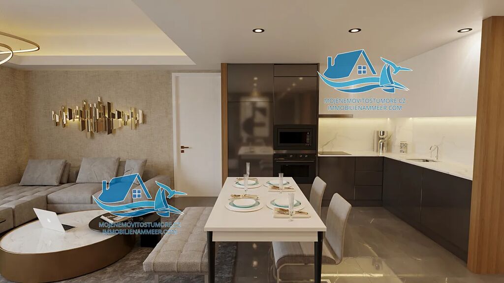 Plán splátek je na dva až tři roky bez navýšení. V ceně: klimatizace VRV, luxusní vybavení v koupelně Hansgrohe, luxusní kuchyňská linka a další. Předání podle budov do 1 roku, poslední budovy do 2 let.