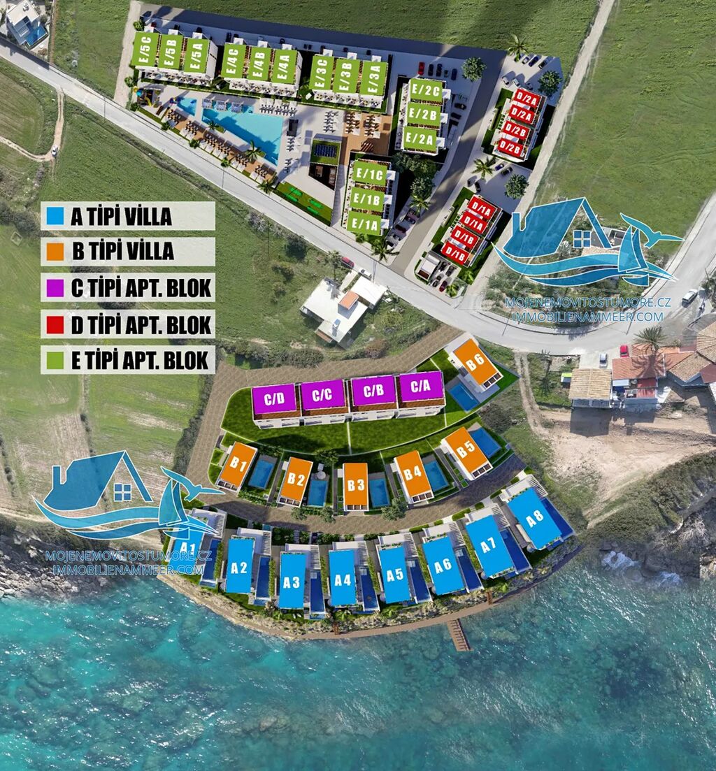 Projekt se skládá ze dvou řád vil u moře a prémiových apartmánů a penthousů za nimi.