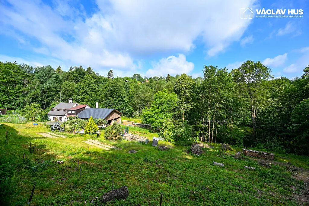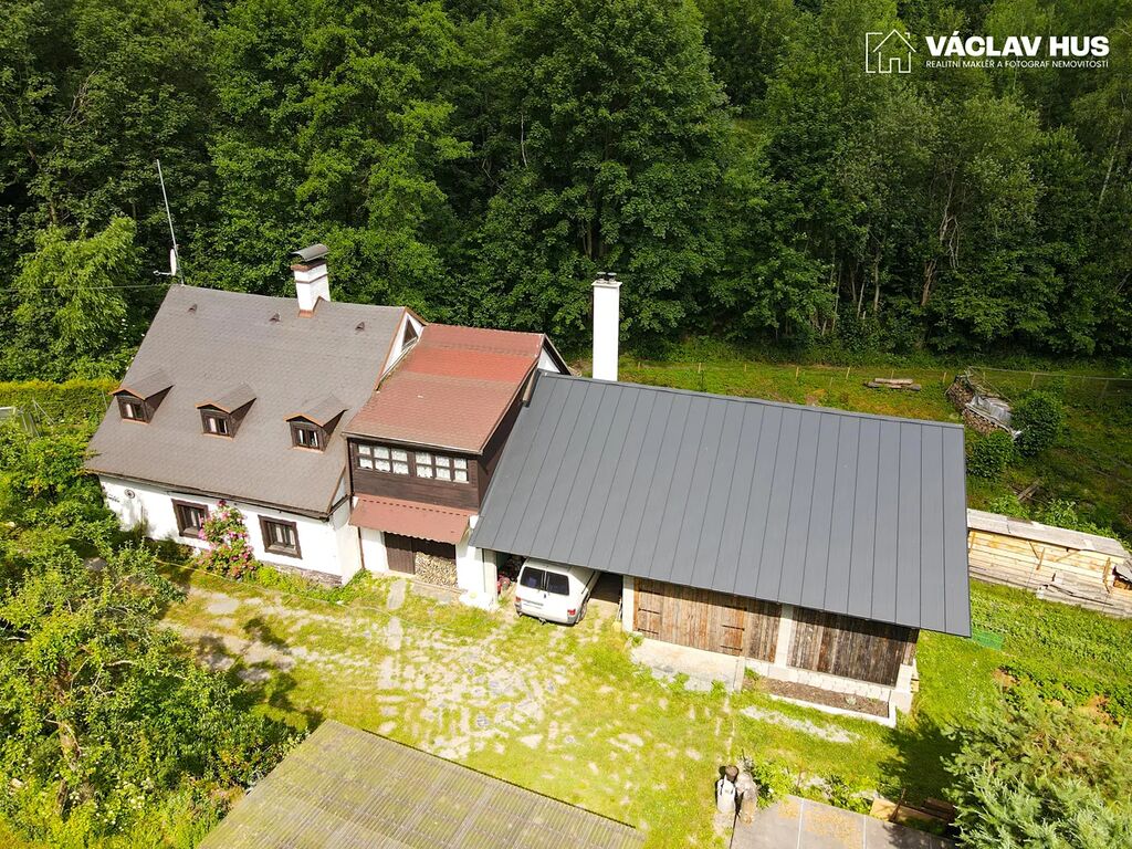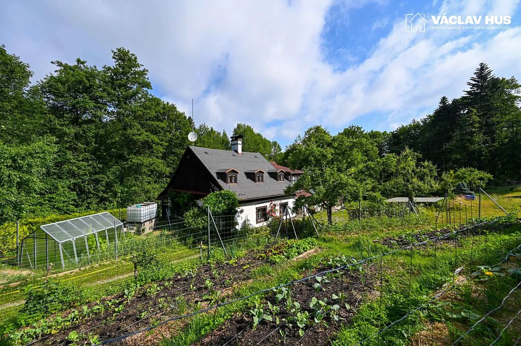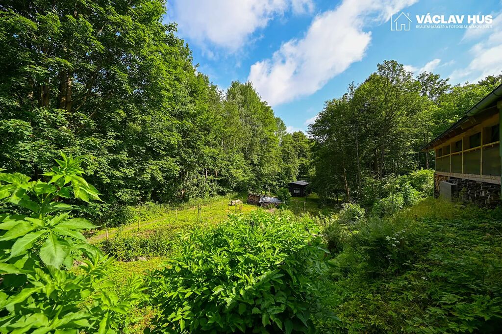 Chalupa o velikosti 116 m² s pozemkem o rozloze 9 434 m² se nachází na samém konci obce s nádherným výhledem do zeleně.