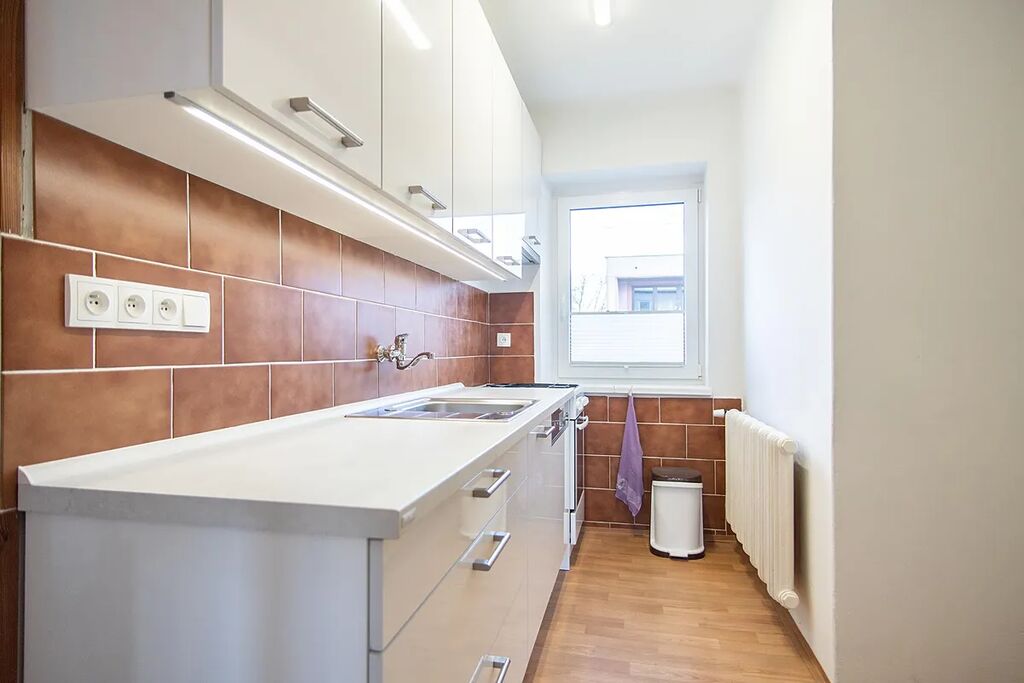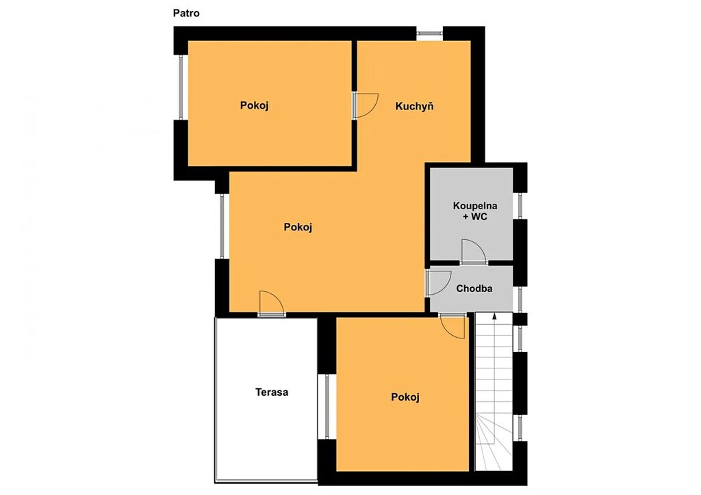 Byt 3+1 (90 m2 - 3 pokoje, plně vybavená kuchyň, koupelna s WC, 11 m2 terasa, 2 velké vestavěné skříně) se nachází v 1 patře.