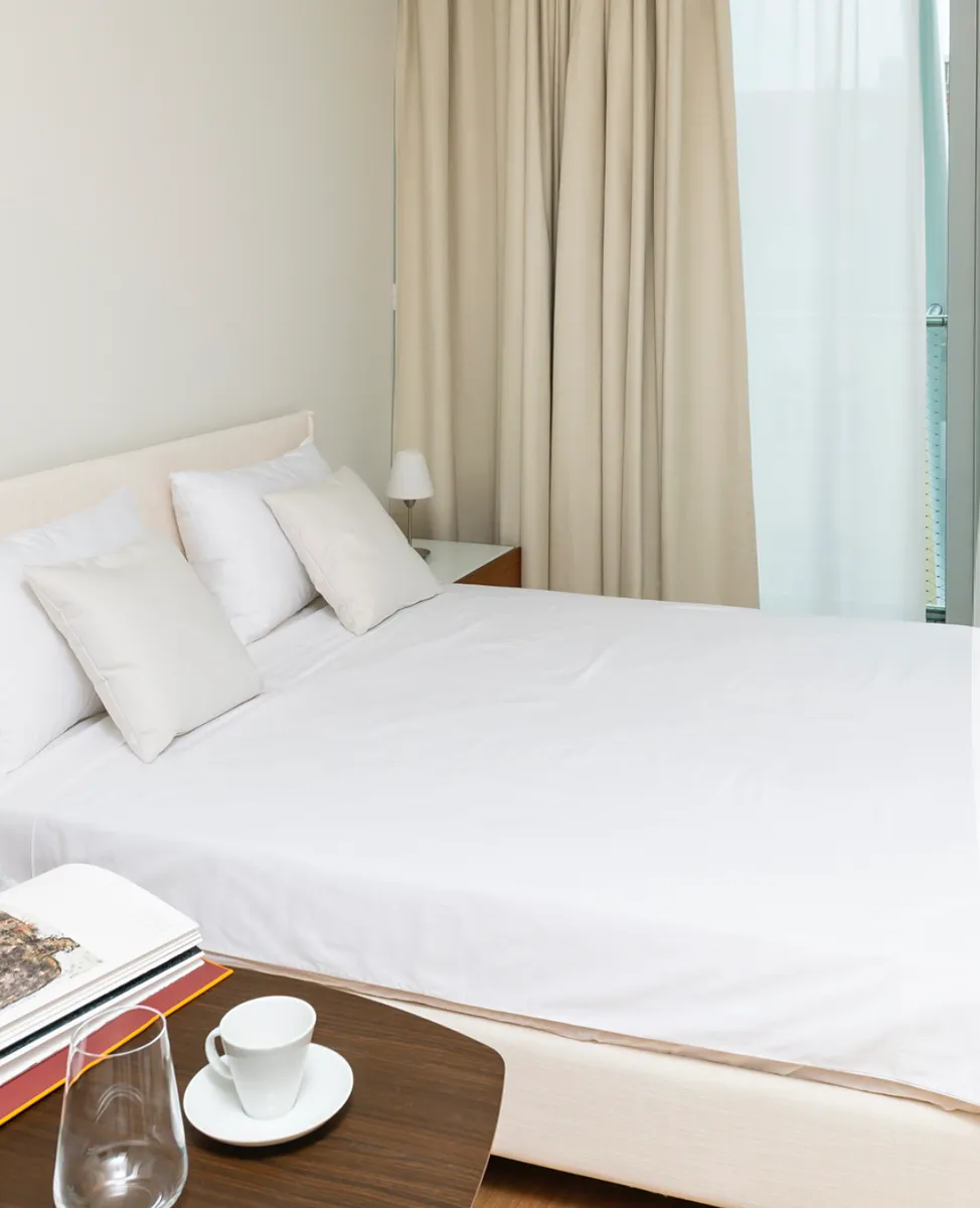 K pohodlí přispívají také služby concierge, možnost pravidelných úklidů a krásné wellness centrum s bazénem a saunou. V bytě se nachází zdravotní matrace, zvukově izolační okna a špičkové koupelny.