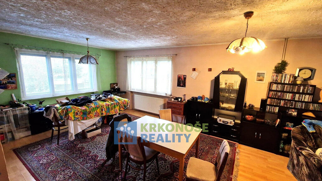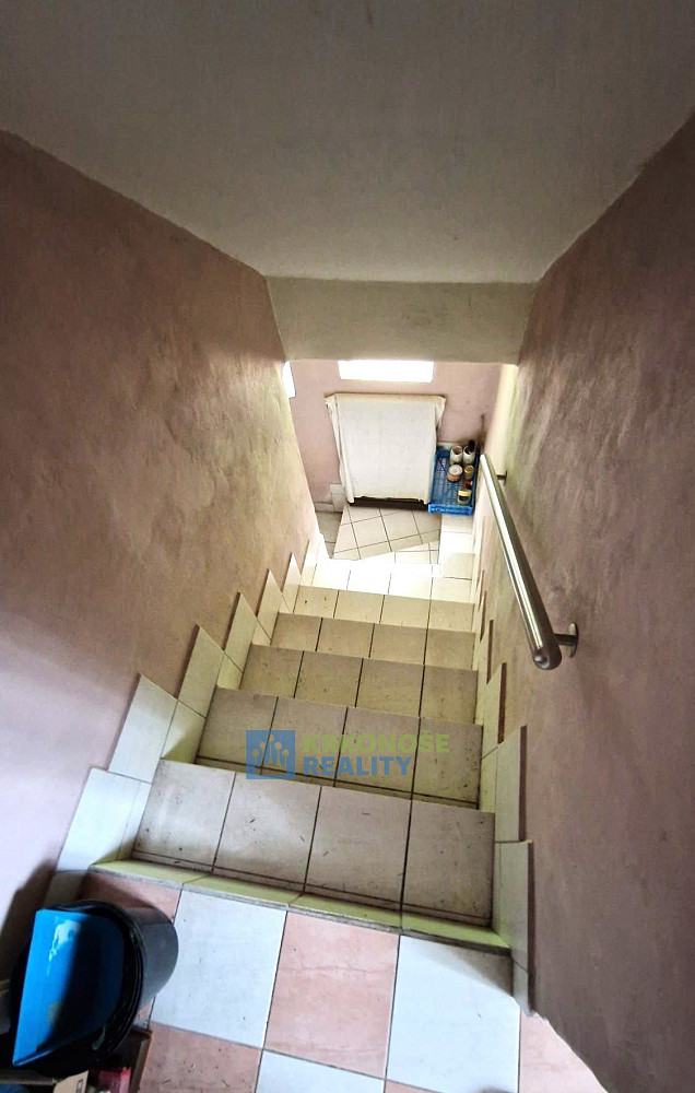 Nabízíme Prodej rodinného domu se zahradou, garáží a pergolou, v okrajové části obce Úpice, ulice Palackého. Objekt je zděný, s kamennou podezdívkou a břízolitovou fasádou. Ve větší části své zastavěné plochy je dům podsklepen. Dům je vytápěn plynovým kotlem ústředního topení. Je napojen na veřejný kanalizační a vodovodní řád + vlastní studna. Elektřina – 220/380V. Dispozice – v prvním podzemním podlaží domu se nachází bytová jednotka o velikosti 2+kk - chodba, koupelna (vana, sprchový kout, umývadlo), WC, obývací pokoj s kuchyňským koutem, ložnice, schodiště do druhého nadzemního podlaží, kde je bytová jednotka 3+1 – chodba s výstupem na venkovní nezastřešenou terasu, 2 pokoje, kuchyň, koupelna (rohová vana, umývadlo) s WC, komora. V 1. podzemním podlaží je chodba, prádelna, kotelna, sklep, spíž a garáž. K objektu dále přísluší samostatně stojící dřevěná pergola, jež však není se zemí pevně spojena základy, nepodléhá tedy zápisu do katastru nemovitostí. K domu přísluší okolní okrasná zahrada, která s domem a přilehlou vedlejší stavbou tvoří funkční celek.