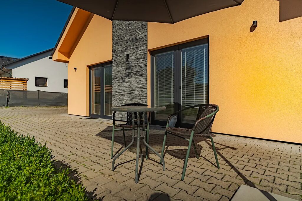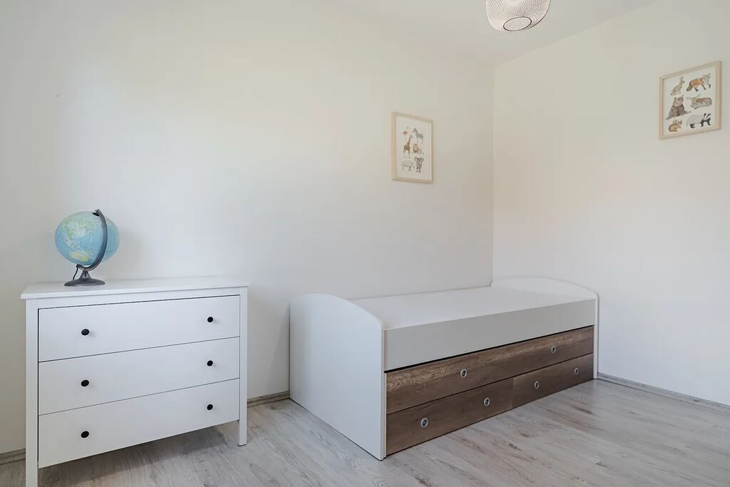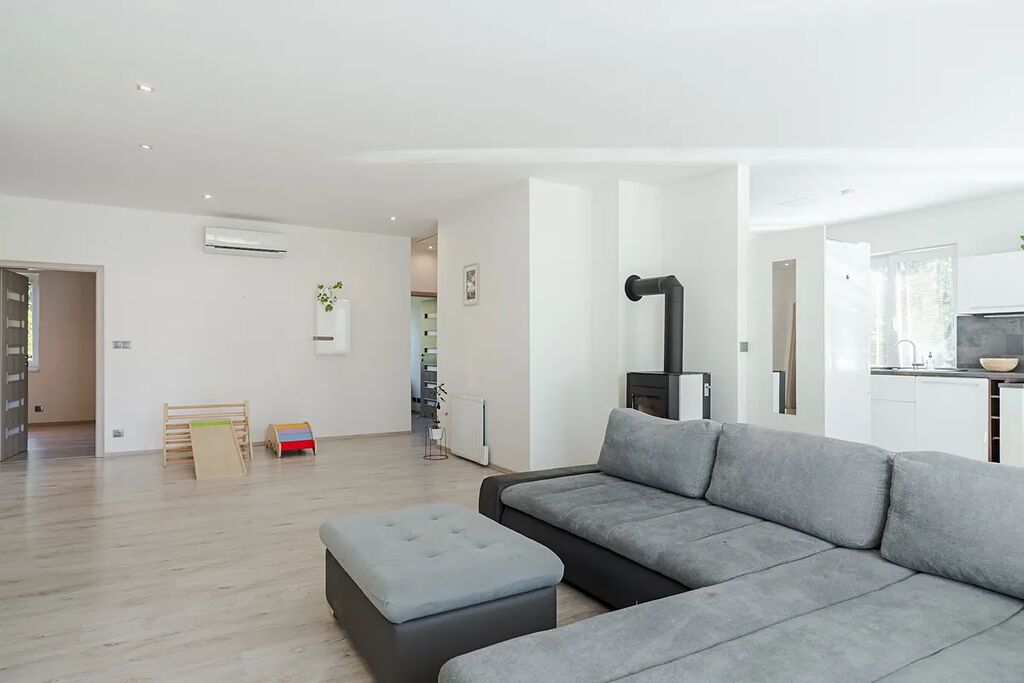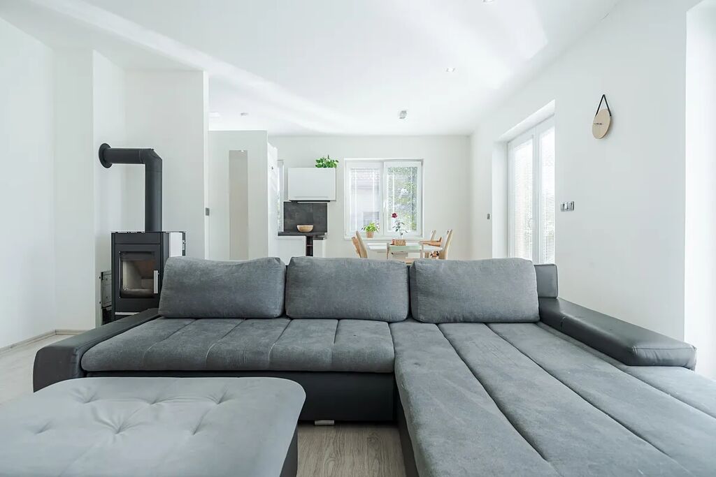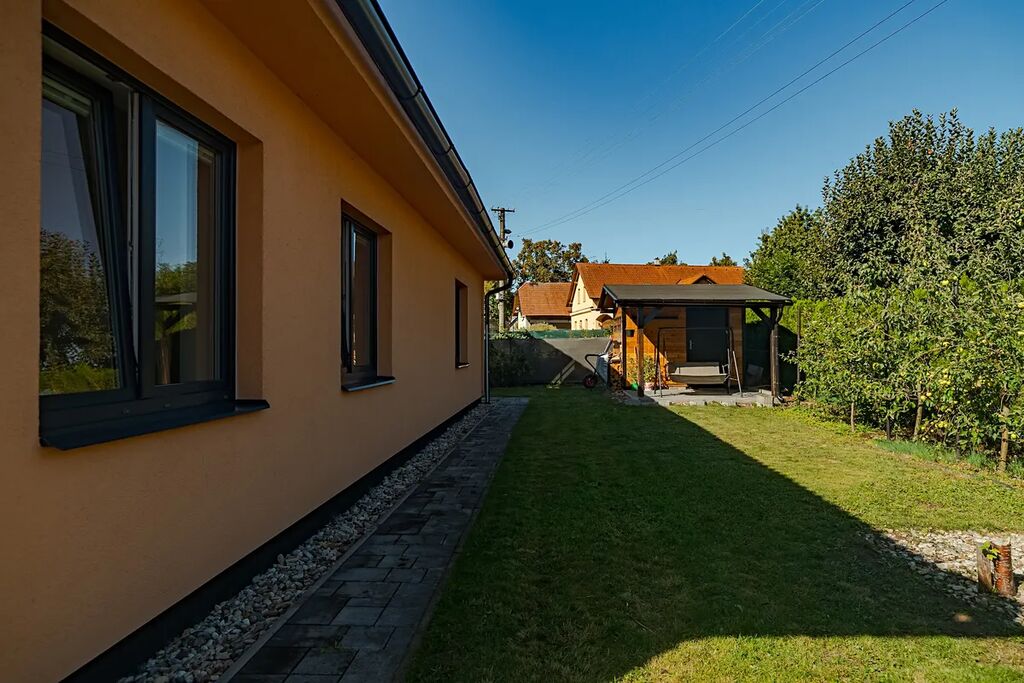 Exkluzivně nabízíme k prodeji rodinný dům v obci Hrušová, v klidné části s výbornou dostupností do Vysokého Mýta, Chocně, Litomyšle i Ústí nad Orlicí. Moderní zděný dům, jehož stavba byla zahájena v roce 2016 a zkolaudován byl v prosinci 2017, stojí na udržovaném a oploceném pozemku o celkové výměře 891 m², z toho zastavěná plocha činí 151 m² a obytná podlahová plocha 125 m². Nabízí komfortní a funkční bydlení, které ocení každá rodina. Dům je přízemní a veškerý život se odehrává v rámci jednoho patra. Hlavním srdcem je velkorysý obývací pokoj s jídelnou a kuchyní o ploše 44,6 m², odkud je přístup do všech dalších částí domu. Dispozice je navržena prakticky: najdeme zde prostornou ložnici (16,4 m²), dva samostatné dětské pokoje (12,3 a 11,3 m²), koupelnu, dvě toalety (samostatné WC a další v koupelně), technickou místnost se zázemím, šatnu, chodbu a zádveří. Dům je napojen na elektřinu, vodovod a kanalizaci, vytápění je elektrické olejové radiátory + krbová kamna. Kvalitní stavební provedení zajišťuje zděná konstrukce s izolacemi, střecha je sedlová s pálenou krytinou a okna plastová s izolačním dvojsklem. Pozemek je kompletně oplocen kombinací dřevěného plotu na podezdívce a panelového pozinkovaného oplocení, doplněného o posuvnou bránu. Zahrada je pečlivě udržovaná, s dostatkem zeleně a v zadní části je umístěn praktický zahradní domek. Velkým bonusem je projekt a platné stavební povolení na výstavbu garáže, které si současný majitel již prodloužil – nový vlastník tak má možnost garáž okamžitě realizovat. Obec Hrušová je vyhledávaná díky klidné atmosféře a výborné občanské vybavenosti v okolí. V blízké budoucnosti ještě vzroste její atraktivita – v dosahu obce se připravuje nájezd na novou dálnici D35, což významně zlepší dopravní dostupnost celé lokality. Současný majitel je připraven dům předat k užívání v březnu 2026, nicméně zakoupení je možné ihned. Do té doby lze sjednat nájemní smlouvu nebo jinou formu setrvání současných vlastníků. Část vybavení domu může po dohodě zůstat. Majitel si vyhrazuje právo prodat nemovitost zájemci s nejvýhodnější nabídkou. Více informací u makléře na telefonním čísle.