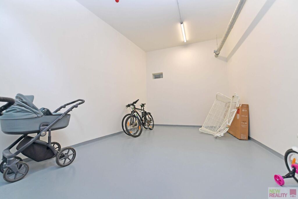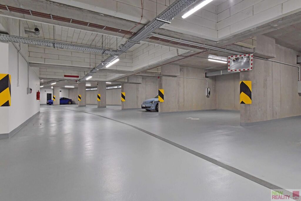 K bytu náleží garážové stání v 1. podzemním podlaží, dále společná komora pro kola a kočárky a uzavřené zázemí pro kontejnery na odpad pohodlné bydlení s veškerým zázemím pod jednou střechou.