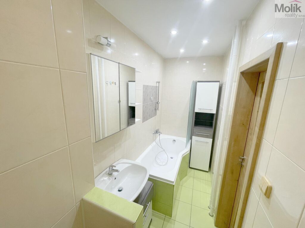 Samotný byt je rovněž kompletně zrekonstruovaný - nová koupelna s vanou, WC zápustný modul, keramické obklady a dlažba, umyvadlo zabudované ve skříňce atd. V kuchyni nová kuchyňská linka, vč. zabudovaných spotřebičů a digestoře s osvětlením atd.