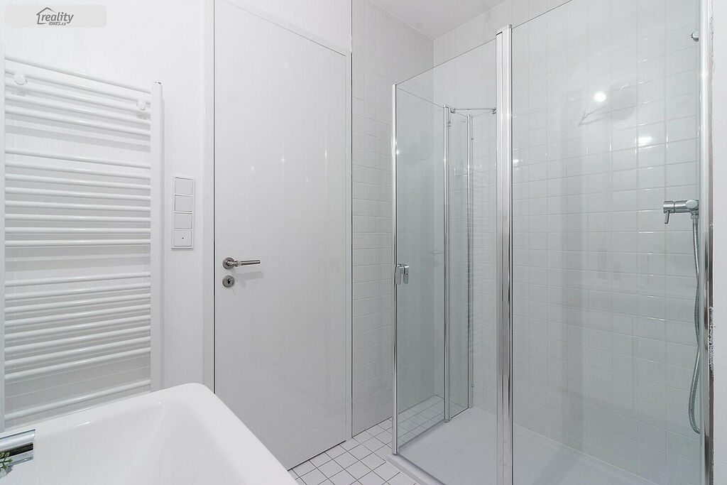 Velkou výhodou tohoto bytu jsou dvě koupelny. Vana i sprchový kout. Velkoformátová okna. Dřevěné podlahy opatřené ochrannou vrstvou přírodního vosku. Speciální italské závěsy s povrchovou úpravou tlumící sluneční svit. A v neposlední řadě moderní světlý design.