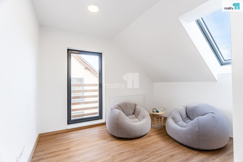 Tento samostatný dům s dispozicí 5+kk nabízí dostatek prostoru pro celou rodinu. Otevřený obývací prostor s kuchyní plynule přechází na terasu orientovanou na jih, kam po celý den proudí světlo. Každý dům je vybaven tepelným čerpadlem a fotovoltaickou elektrárnou, což zajišťuje nízké provozní náklady. Nechybí ani krbová kamna, která jistě oceníte během chladnějších dnů. Součástí je zahrada ideální pro rodinné chvíle i relax, nechybí ani možnost bezproblémového parkování v garáži, která je součástí domu.