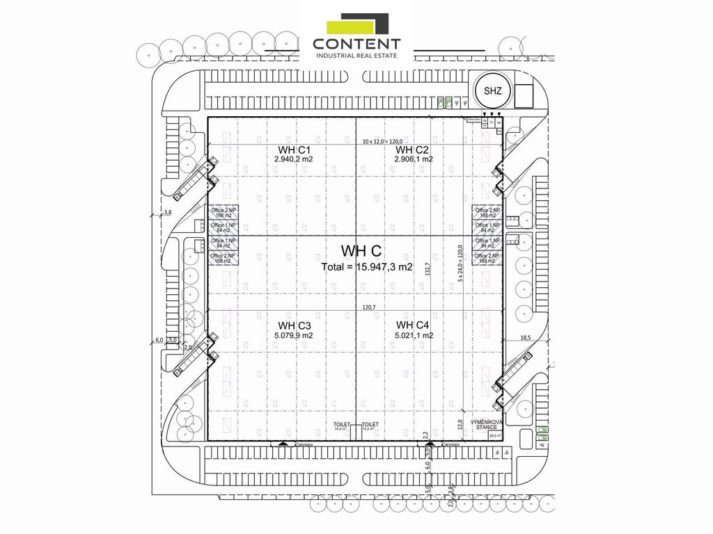 - skladovací/výrobní plocha 2940 m²