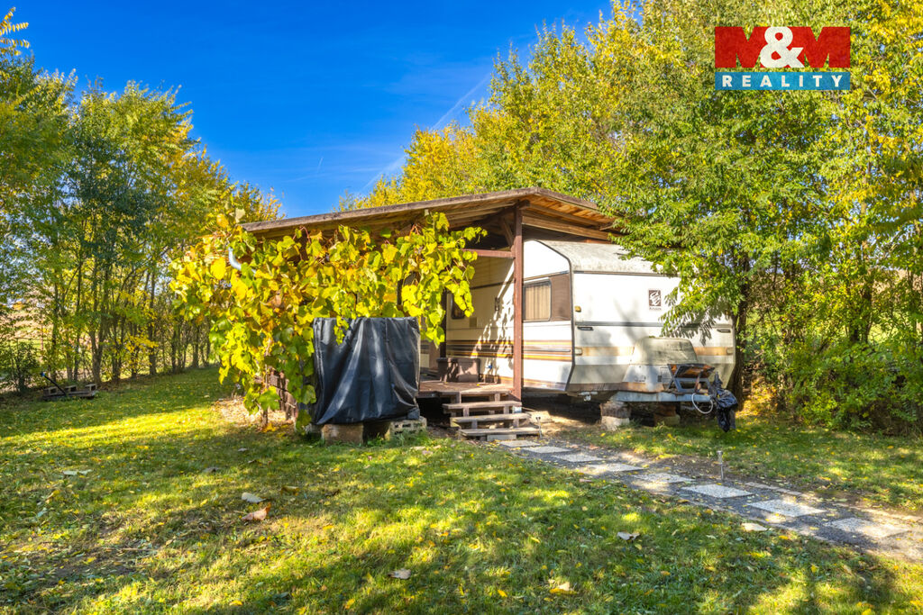 Nabízím k prodeji oplocený pozemek o velikosti 439m2 na kterém se nachází plně funkční obytný přívěs a prostorná pergola, skvělá pro letní posezení s rodinou či přáteli.