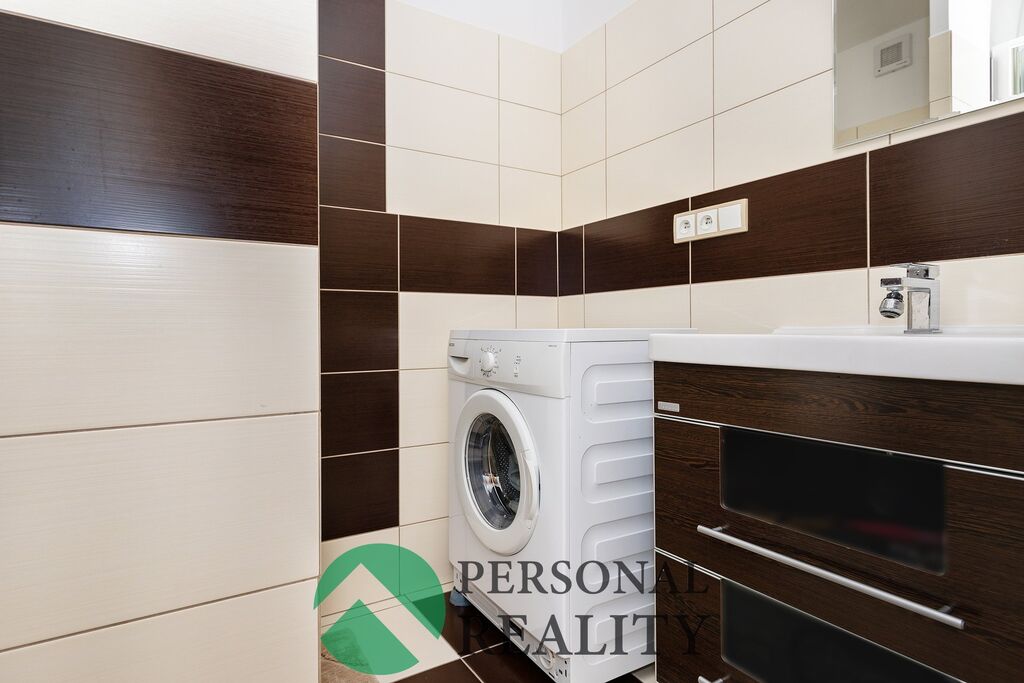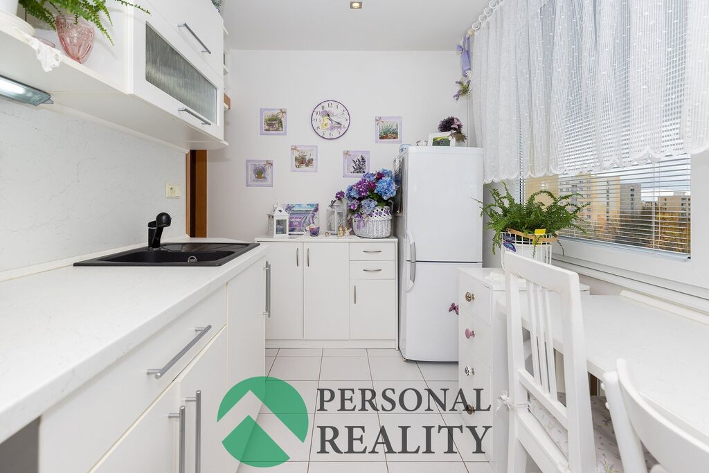 Byt je dispozičně velmi prakticky řešen – z předsíně je vstup do kuchyně, obývacího pokoje, WC a koupelny. Kuchyně je vybavena kuchyňskou linkou na míru včetně spotřebičů (trouba, varná deska, myčka, digestoř, lednice),  a následně vstup do ložnice.