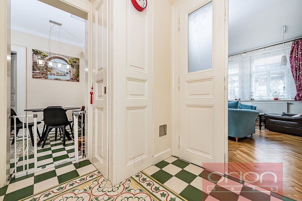Vybavení a technické informace: kvalitní repasovaná špaletová okna, původní dřevěné dveře s pískovanými skly, dřevěné parkety a dlažba, podlahové topení v koupelně, nové rozvody elektřiny, vody a topení, plynový kotel Vaillant se zásobníkem na teplou vodu.