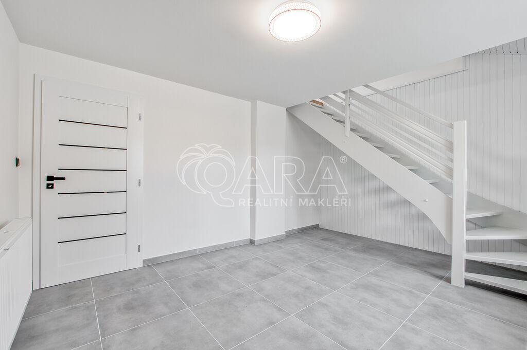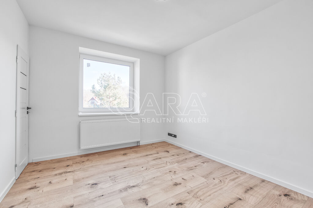 Jednotka 3+1 o podlahové ploše 115 m² zabírá celé horní patro domu, který prošel v roce 2024 kompletní rekonstrukcí. V bytě se nachází tři prostorné a světlé pokoje, kuchyně připravená k dokončení, koupelna s vanou a toaletou a dva balkony s krásnými výhledy. Jeden orientovaný na východ, druhý na jih. Každý pokoj nabízí dostatek prostoru pro ložnice, dětské pokoje nebo klidné pracovny. Celý interiér má nové sádrové omítky, vinylové podlahy v dekoru dřeva a keramickou dlažbu v koupelně. Všechna okna jsou plastová s trojskly.