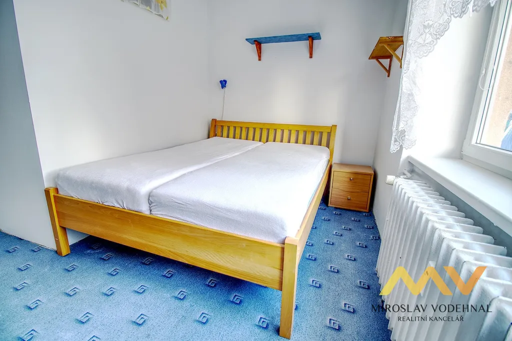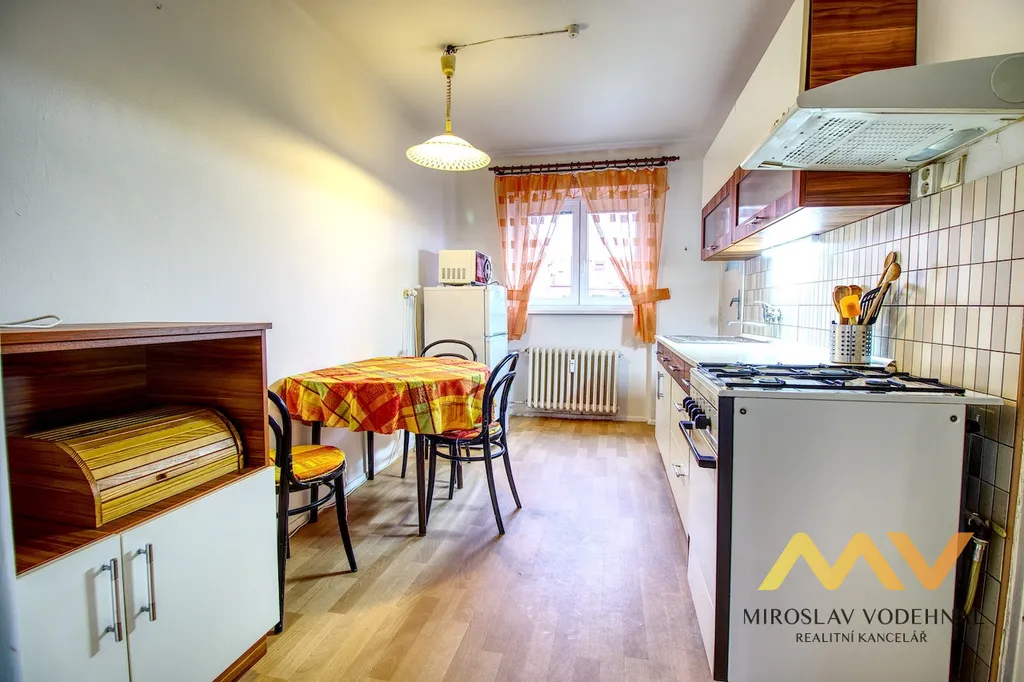 Byt je dispozičně řešen jako kuchyň se spíží, dva samostatné pokoje, koupelna s vanou, samostatné WC, předsíň a komora. Součástí vybavení je sedací souprava, jídelní stůl se židlemi, nová kuchyňská linka s plynovým sporákem, obývací stěna, manželská postel, šatní skříně, pracovní stůl, lednice, mikrovlnná trouba, pračka a televize. K bytu náleží menší balkón 1 m2. Sklep není k dispozici.