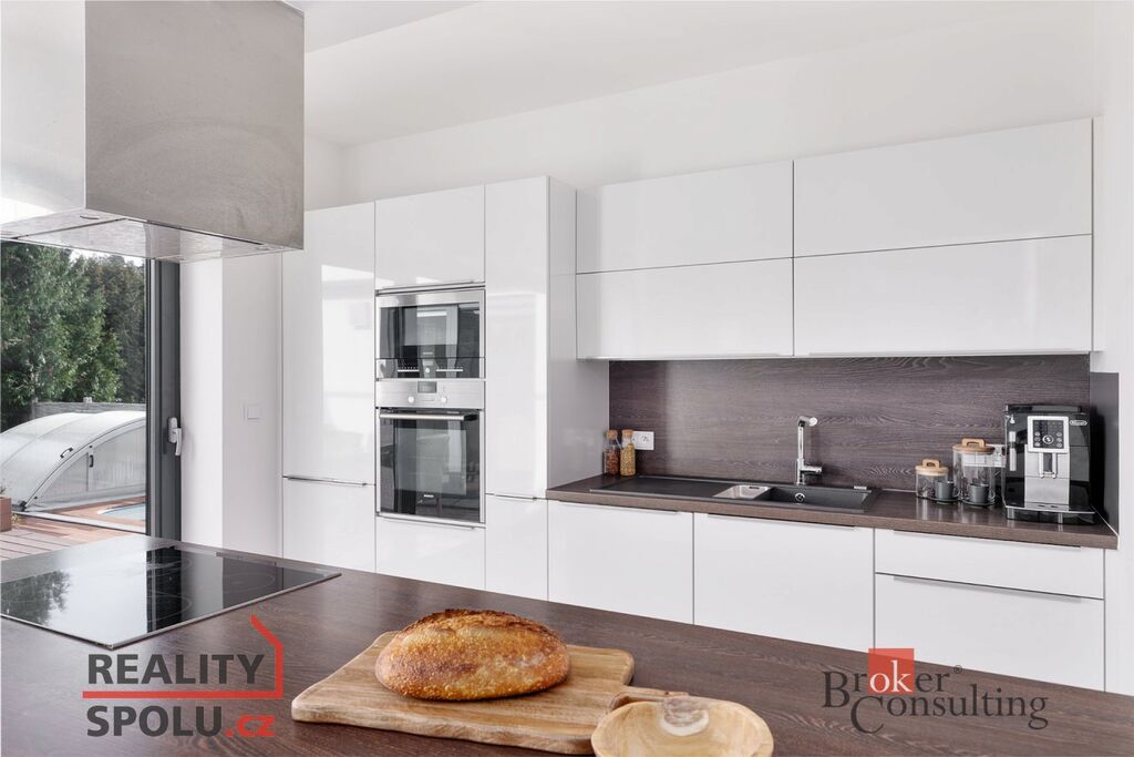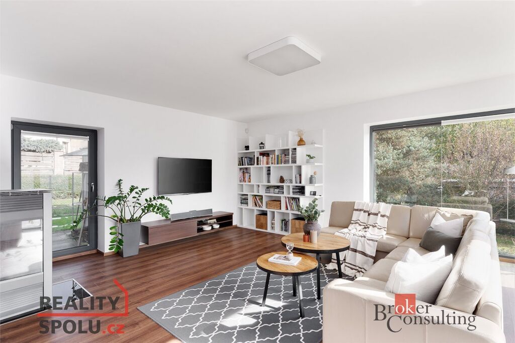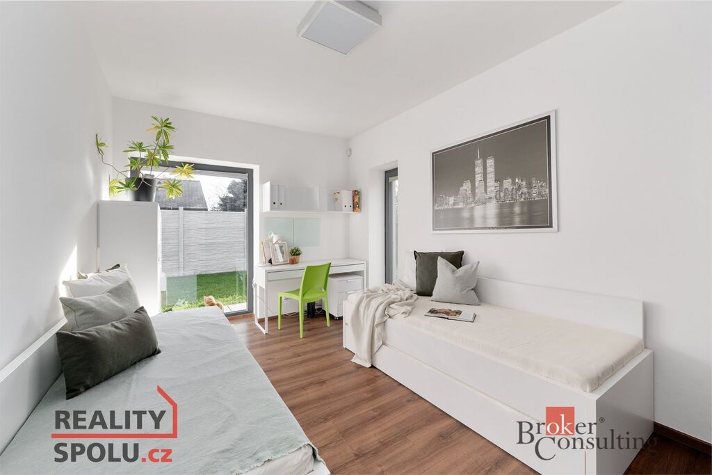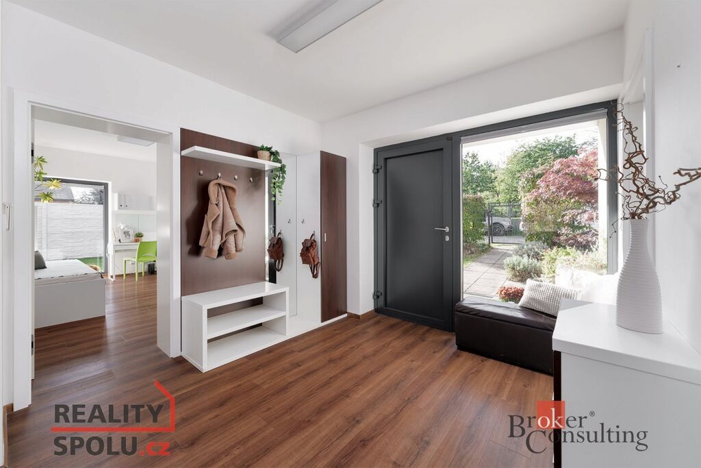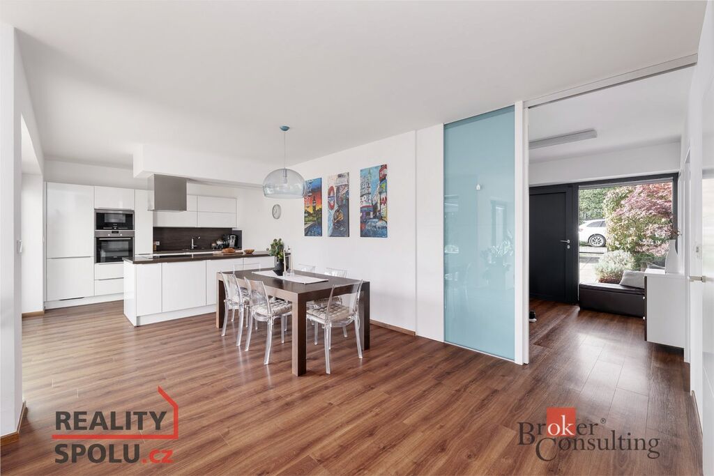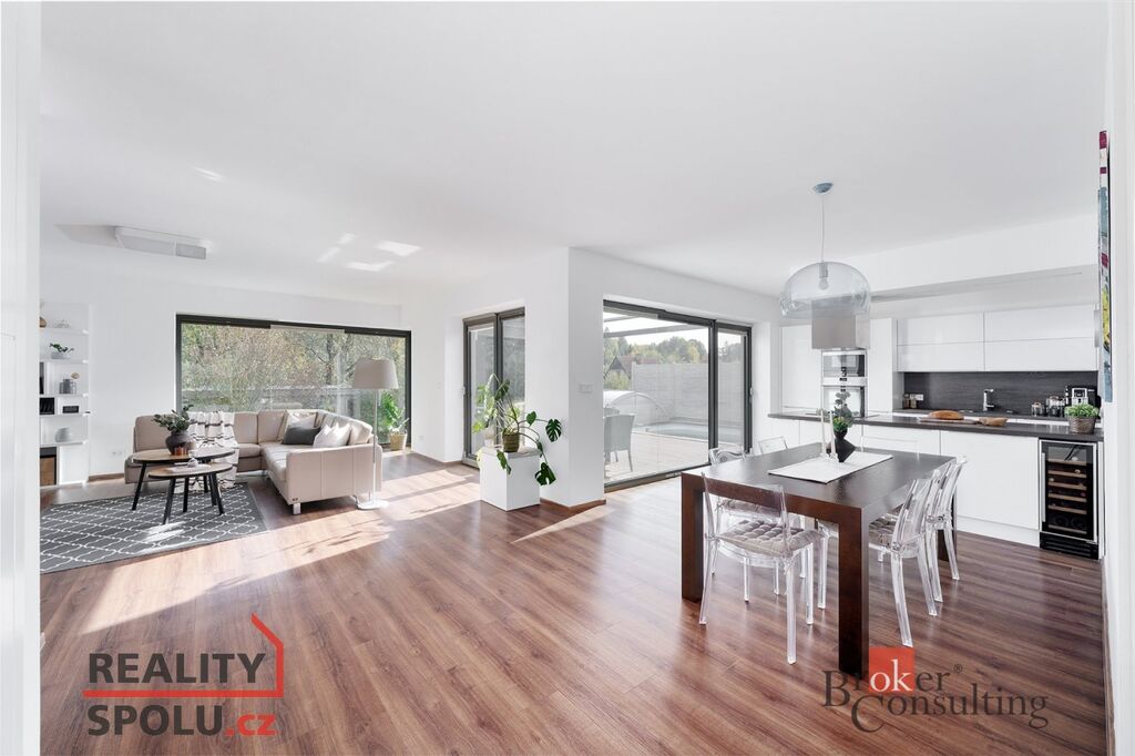 • Vzdušný interiér s velkoformátovými okny a orientací do zelené, vzrostlé zahrady zajišťuje dostatek denního světla a soukromí.