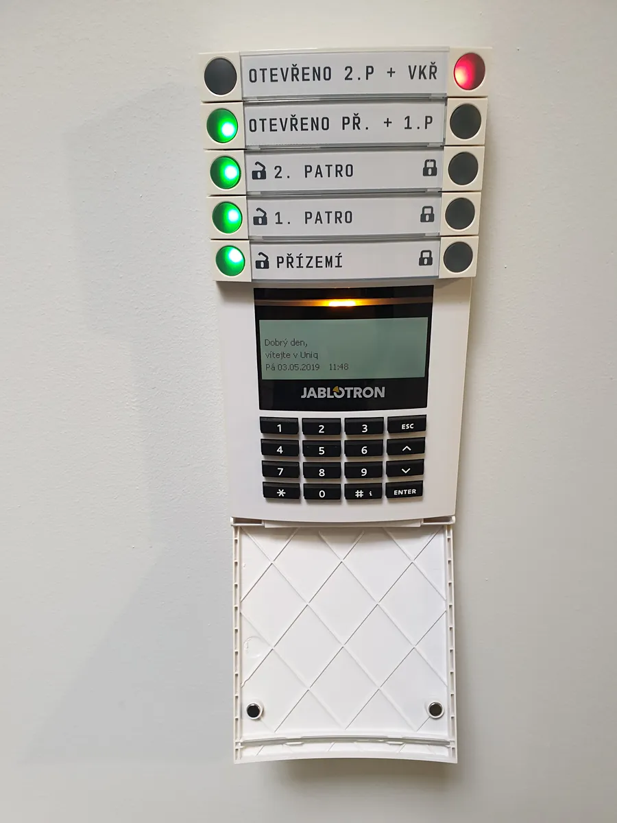 U vchodu domu je zvonek s domácím video telefonem do každého patra + kamerovým monitoringem.