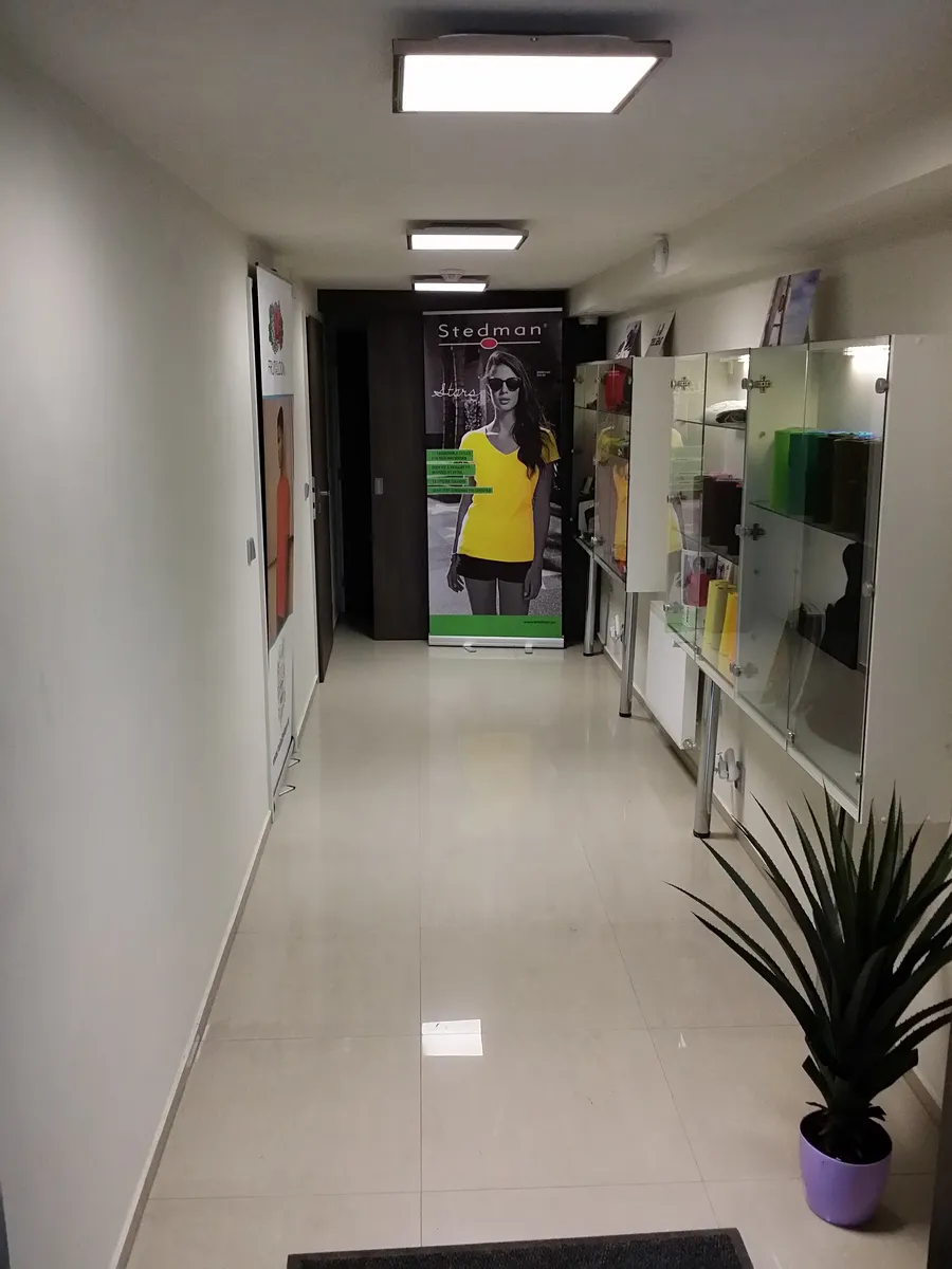 Ve vstupní chodbě prosvětlené vitríny na prezentaci výrobků fotek, služeb atd.