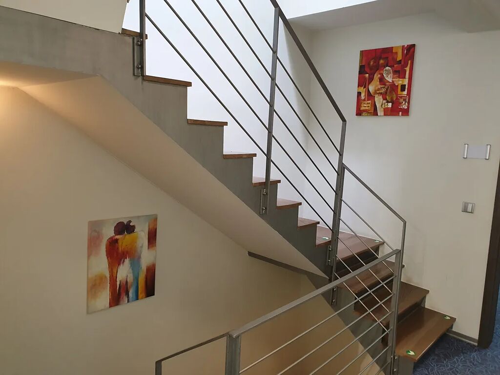 Dům má přízemí + 2 patra s futuristicky podsvíceným schodištěm (nutno vidět).
