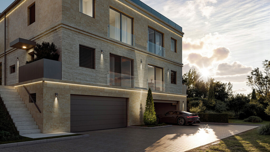 Nabízíme k prodeji nadstandardní novostavbu s dispozicí 5+kk, užitnou plochou 176 m², terasou 25 m² a soukromou zahradou o velikosti 297 m². Vila spojuje moderní architekturu s duší italského stylu. Fasáda z pravého travertinu, dovezeného přímo z Itálie, působí jako elegantní šperk celého domu, který dokonale doplňuje designové venkovní osvětlení fasády a okolí. Večerní iluminace zvýrazňuje architektonické linie, umocňuje atmosféru celého prostoru a dodává vile výjimečný charakter. Luxusní materiály, dokonalé detaily a promyšlené dispozice vytvářejí prostředí, kde se snoubí design, komfort a rodinná pohoda.