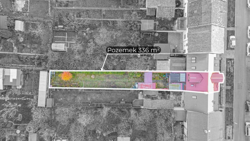 Za domem se nachází zahrada orientovaná do vnitrobloku, která nabízí klidné prostředí bez rušného provozu. Prostor působí velmi příjemně – ideální pro ty, kteří hledají kombinaci zeleně, soukromí a praktického využití. Hned u zadního vstupu domu se nachází krytá veranda, která poslouží jako perfektní přechod mezi domem a zahradou. Můžete tu posedět u ranní kávy, mít přístřešek pro věci nebo vytvořit útulné venkovní posezení. Součástí zahrady je také samostatný nebytový prostor využívaný jako dílna. Skvělé místo pro kutily, řemeslníky nebo hobby prostor.