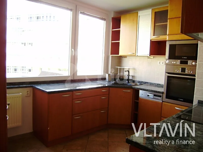 Kuchyň je kompletně vybavena včetně myčky, el. sporáku a lednice s mrazákem. Koupelna je s vanou a pračkou, WC je samostatné. Součástí bytu je také velká šatna (9m2) s vestavěnými skříněmi. Podlahy jsou dřevěné a dlažba. K bytu také náleží zasklená lodžie a sklep. Pro pohodlí nájemníků je v bytě také klimatizace.