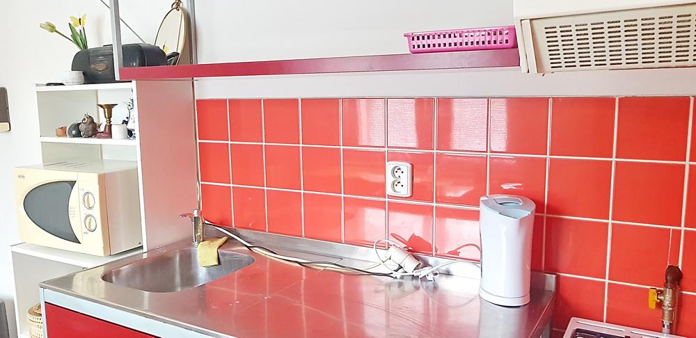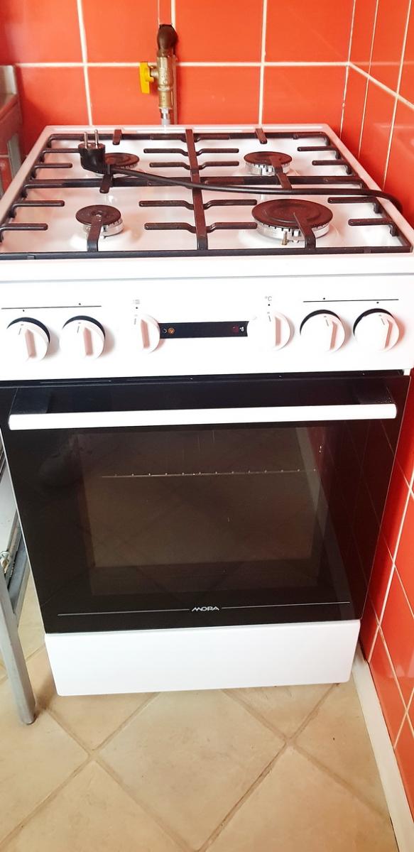 V kuchyni je KL s digestoří, plynový sporák, lednice s mrazákem, mikrovlnná trouba, rychlovarná konvice, jídelní stůl a 4 židle.