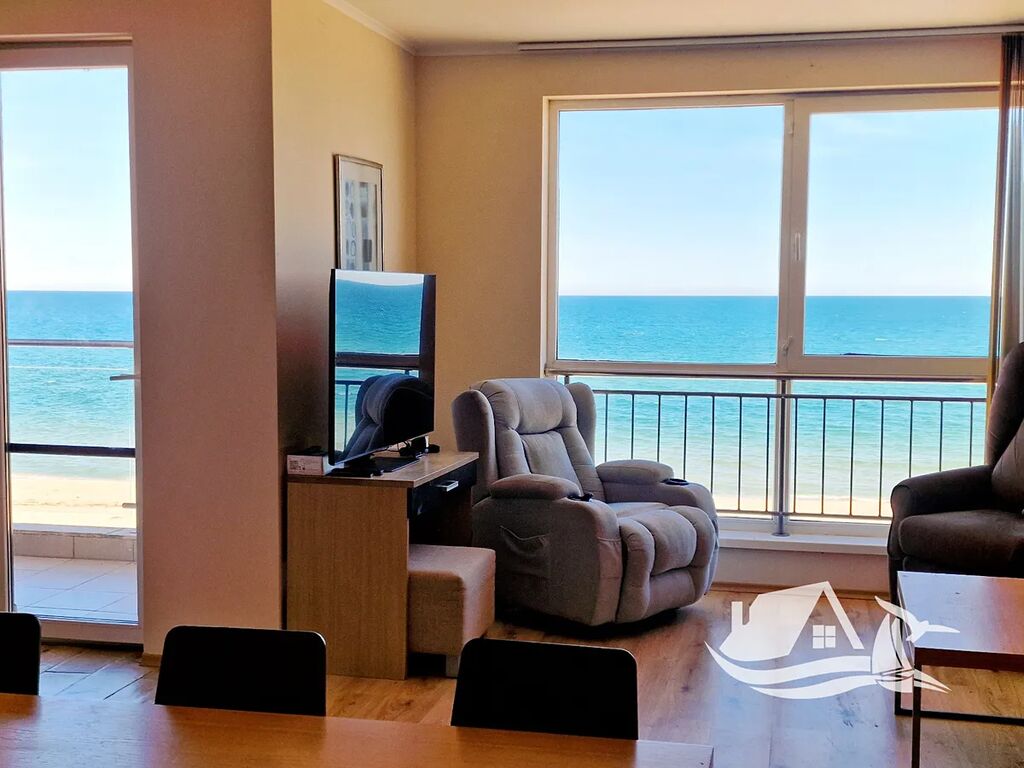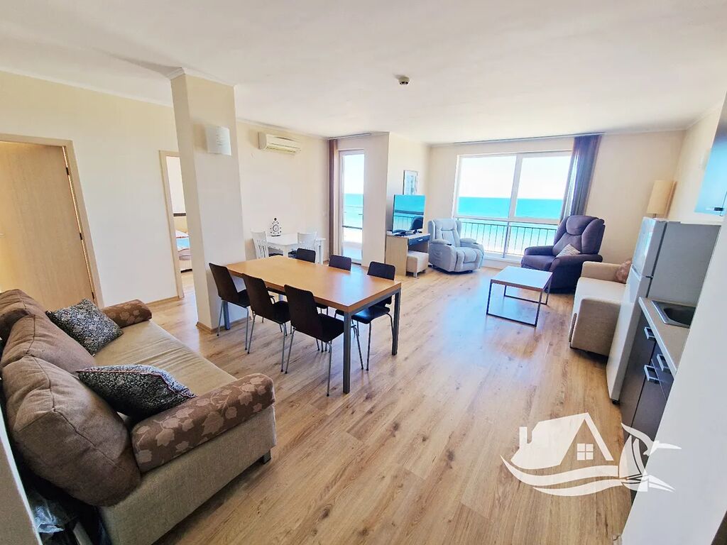 Tento prostorný apartmán 3+kk o celkové ploše 104 m² se nachází ve 3. patře moderního komplexu na samotné pláži. Dispozice zahrnuje světlý obývací pokoj s kuchyňským koutem a vstupem na balkon, dvě ložnice, dvě koupelny a další balkon, který propojuje ložnici a obývací část. Ať stojíte kdekoliv v bytě, vaše oči se setkají s nekonečnou linií moře. Každý den je tady jako malá dovolená.