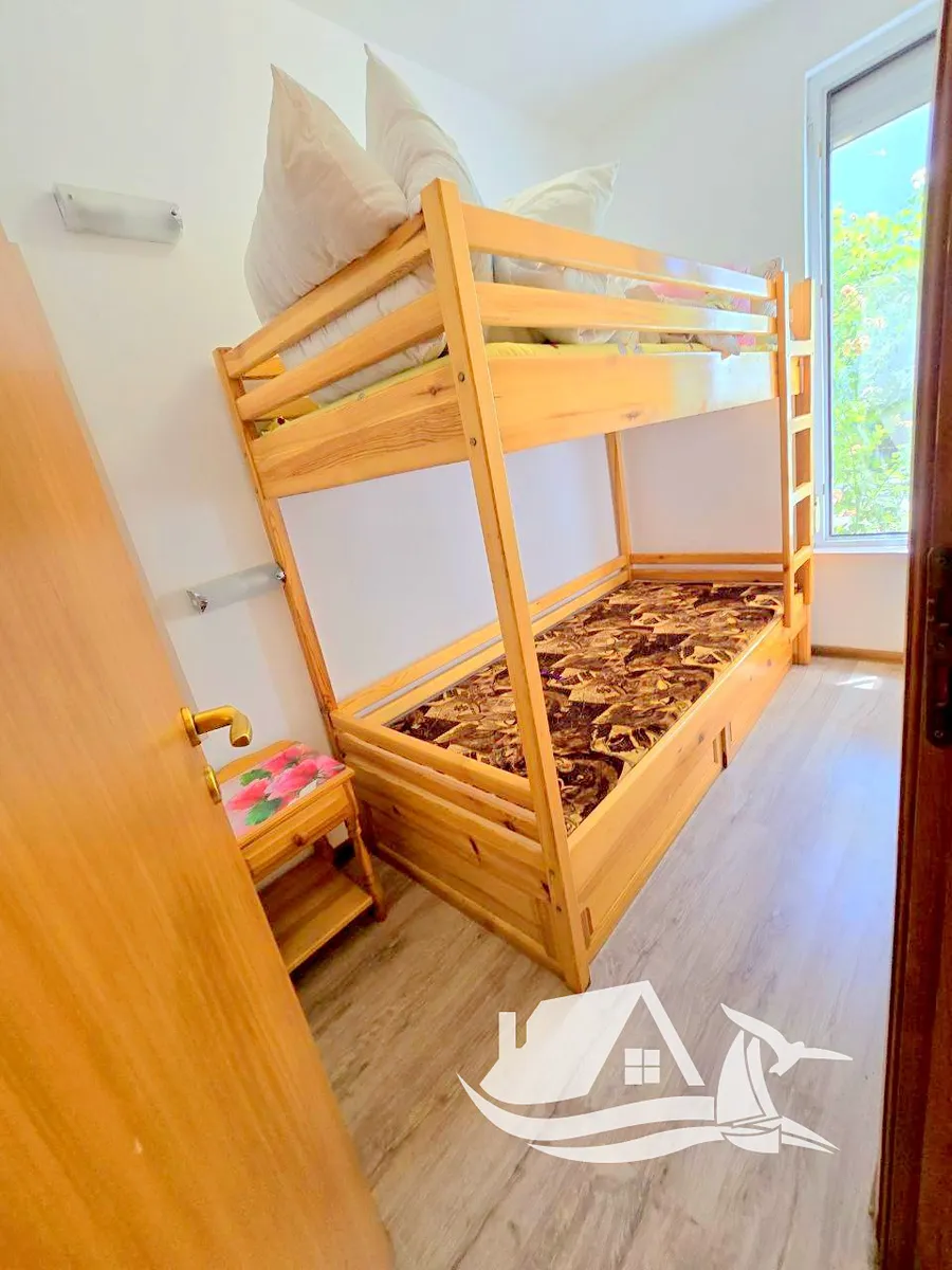 Nabízíme k prodeji komfortní třípokojový apartmán v přízemí v oblíbeném komplexu Kashtite, který se nachází v jedné z nejvýhodnějších lokalit ve Sveti Vlasu – pouhé 3 až 5 minut chůze od tří různých pláží. Centrum města, celoročně otevřený obchod, poliklinika, lékárna a autobusová zastávka jsou v dosahu několika minut.