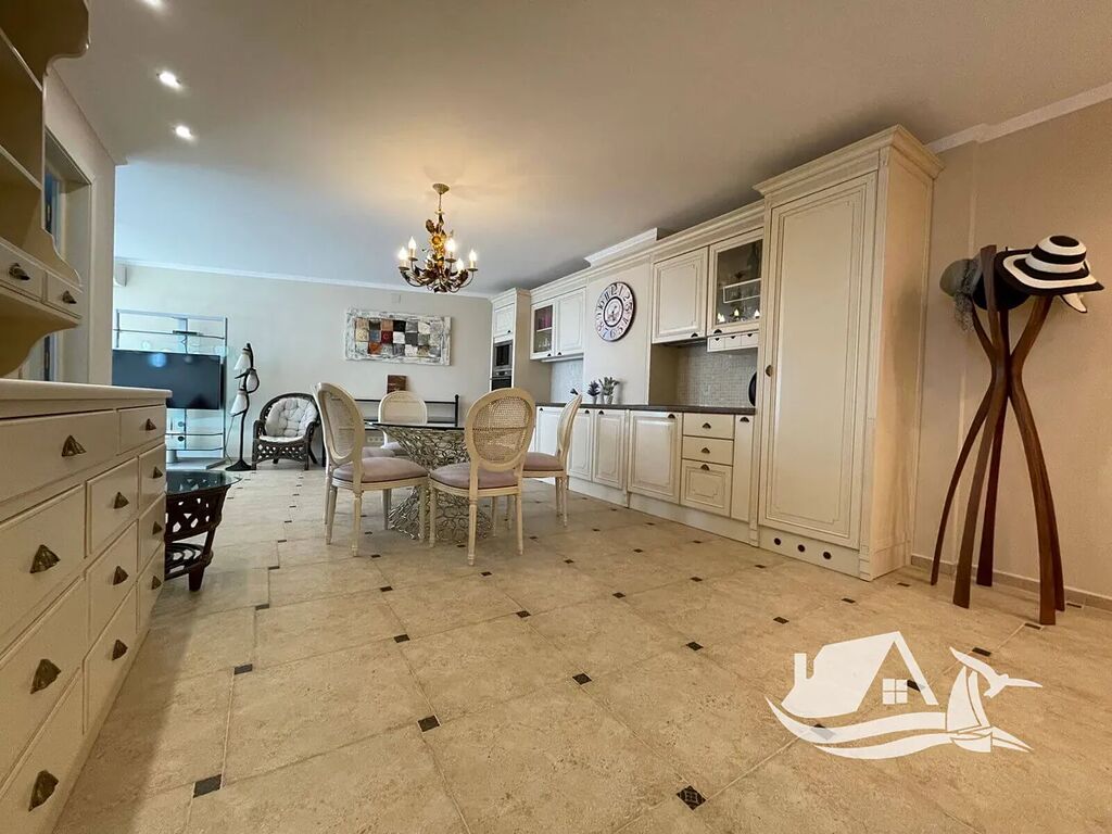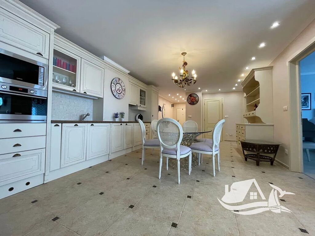 Součástí dispozice je prostorný obývací pokoj s kuchyňským koutem, dvě ložnice a koupelna. Podlahové vytápění a klimatizace v každém pokoji zajišťují příjemnou teplotu po celý rok, a apartmán se prodává kompletně vybavený přesně tak, jak jej vidíte na fotografiích. Stačí si přivézt kufr a začít žít.