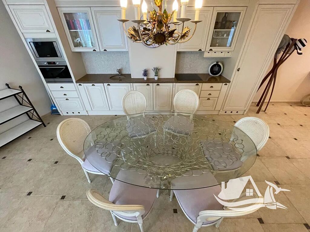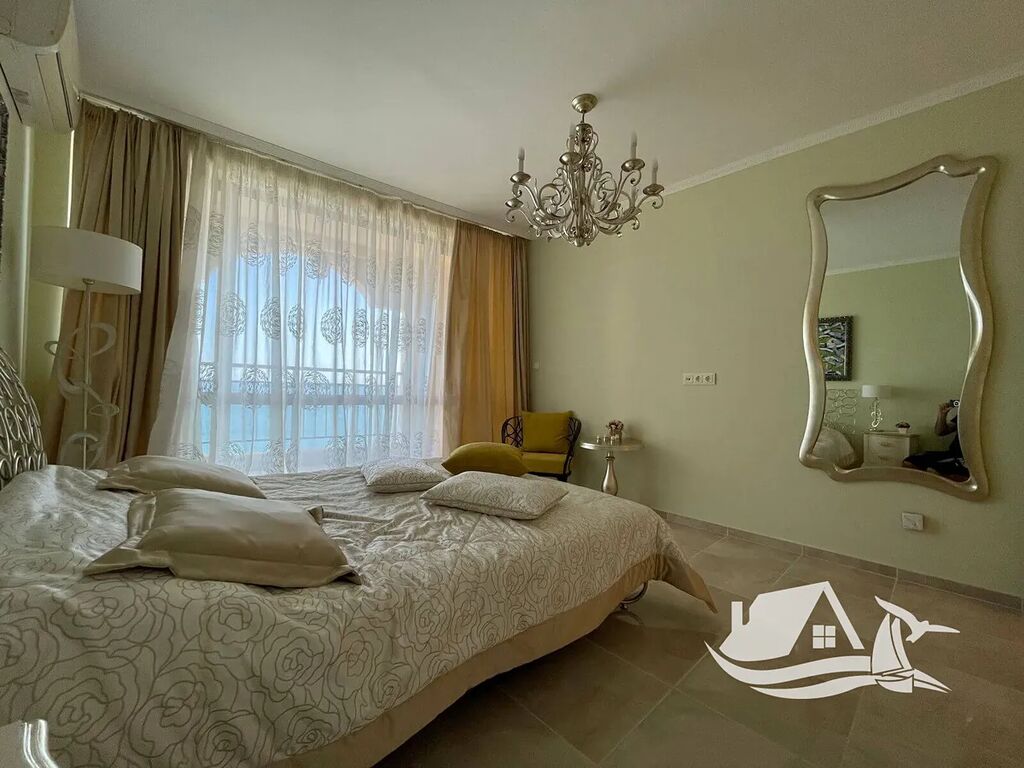 Nachází se v pátém ze šesti podlaží prestižního komplexu přímo u pláže ve Sveti Vlasu. Nabízí 138 m² promyšleného prostoru, kde dominuje světlo, elegance a výhled na moře ze všech pokojů. Interiér je navržen v neoklasicistním stylu s kvalitním nábytkem od italských výrobců a kuchyní z přírodních materiálů. Každá místnost má vlastní vstup na terasu, odkud se otevírá uklidňující panorama Černého moře.