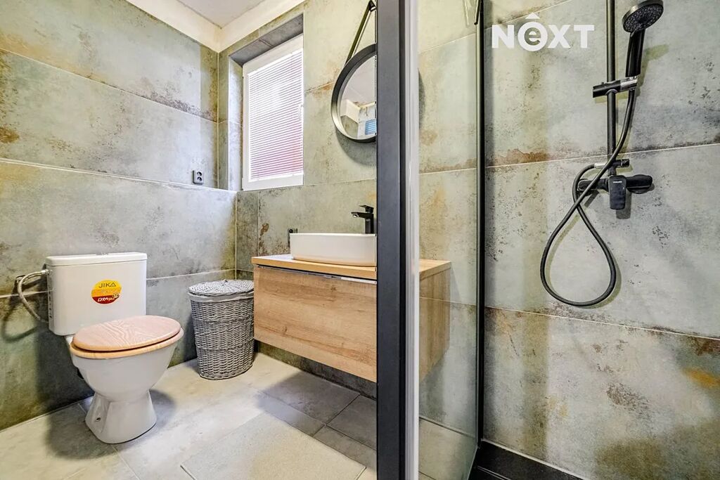 Podlahy kombinují plovoucí dřevo, PVC a dlažbu, takže se tu příjemně bydlí i uklízí. Dům se prodává částečně zařízený – což znamená, že stačí přivézt kufry, zapnout kávovar a bydlet.