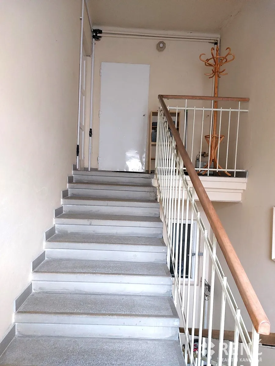 Byt se nachází ve 2. patře domu se třemi byty a je přístupný po vnitřním domovním schodišti.