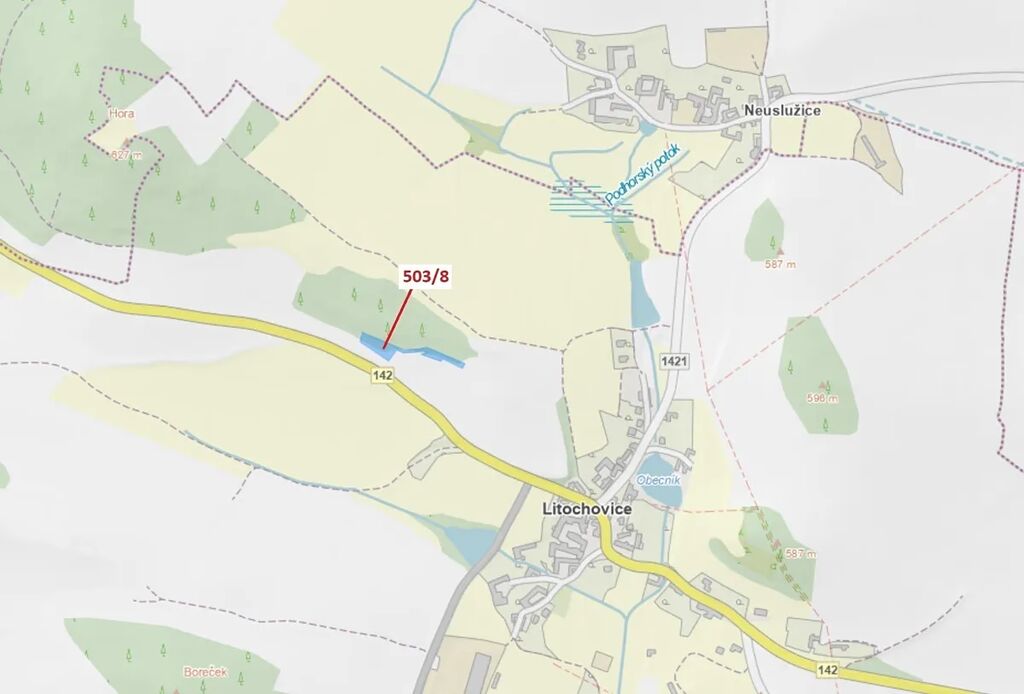 Lesní pozemek o výměře 2656 m2, parcelní číslo 503/8, podíl 1/1, katastrální území Litochovice u Volyně, obec Litochovice, obec s rozšířenou působností Strakonice, okres Strakonice, Jihočeský kraj.